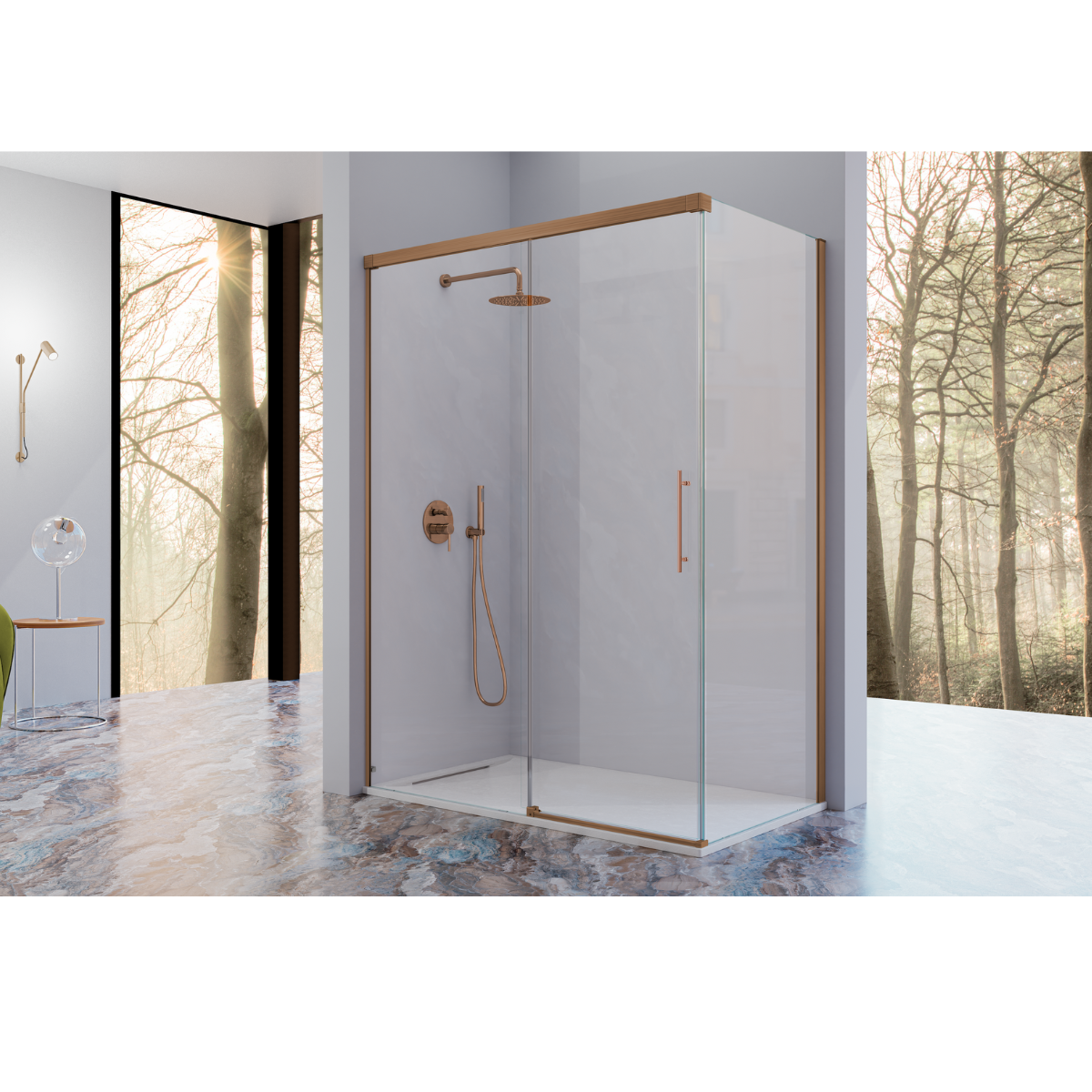Panneau de douche fixe avec porte coulissante, modèle BRONZE, de longueur 100 cm à 180 cm.