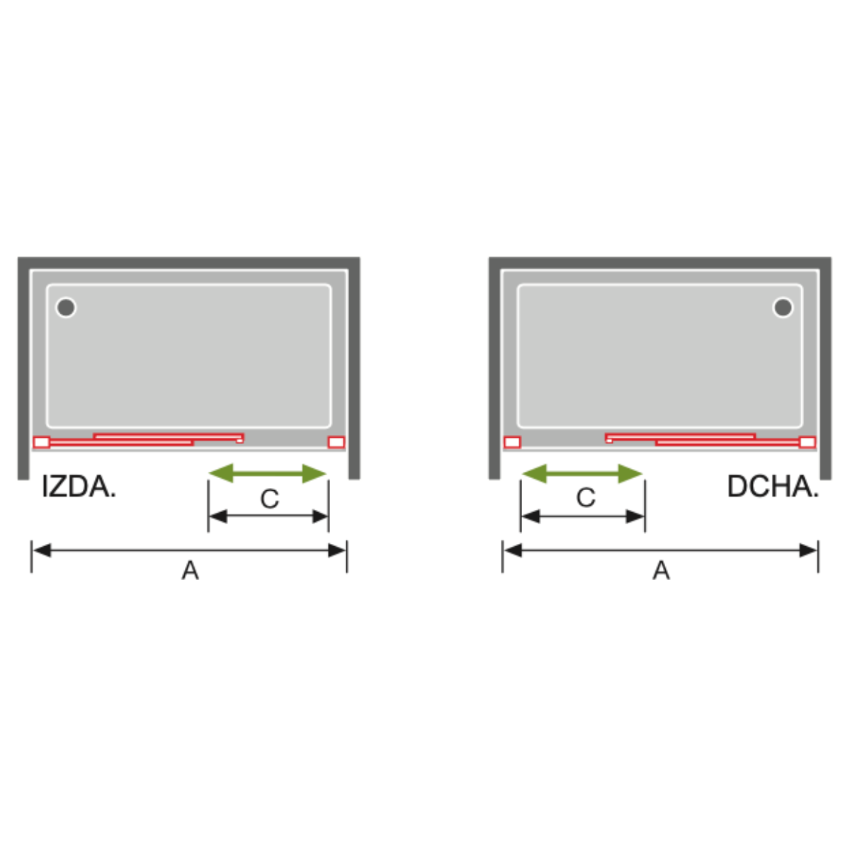 Longueur (paroi + porte) (A) | Ouverture (C) |