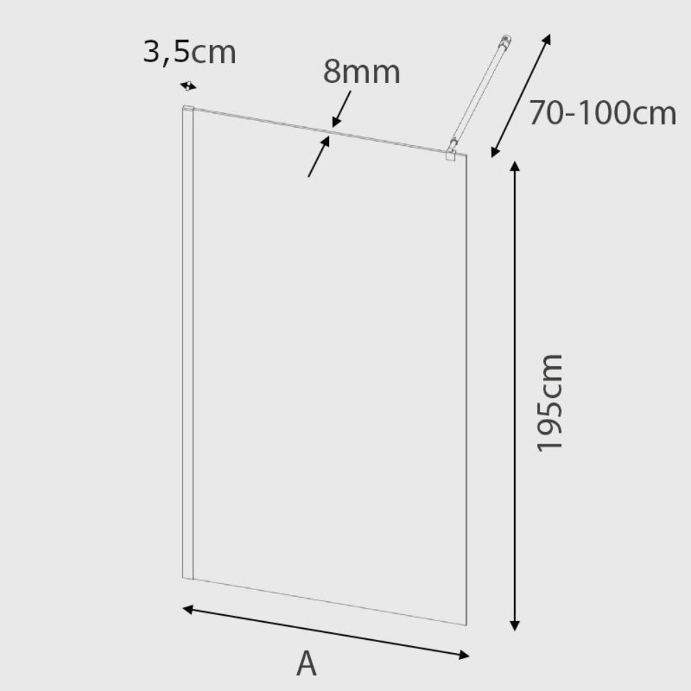 Paroi de douche fixe FRESH pour douche à l'italienne en verre trempé, avec profil chromé.