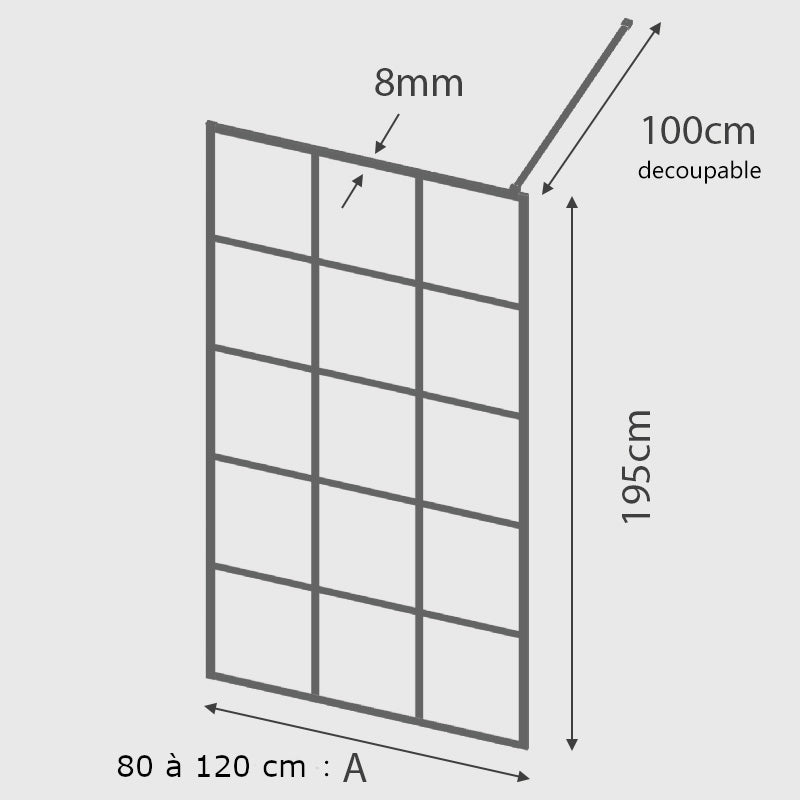 Dans le cas où la largeur de votre receveur excède 100 cm, une solution est de compléter votre achat avec une barre stabilisatrice de 120 cm de long noir mat, découpable à souhait.