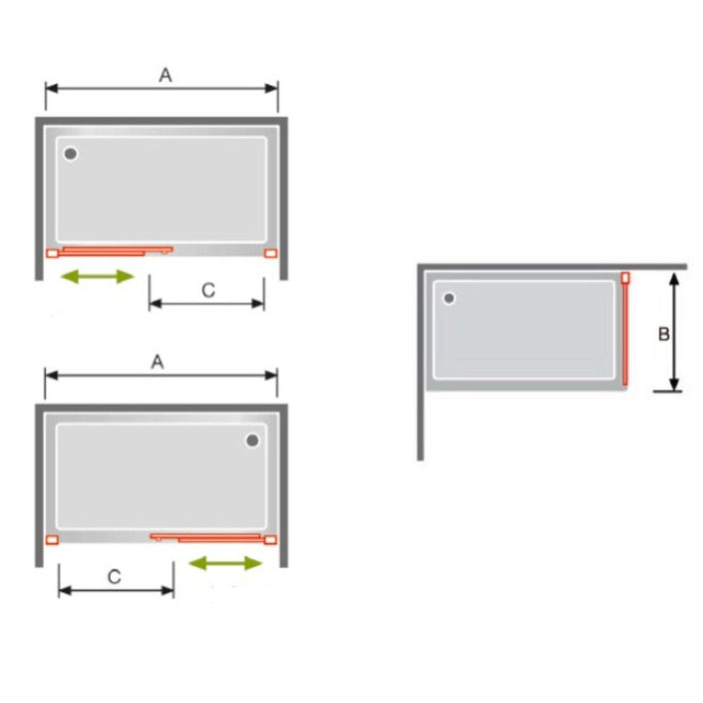 - Longueur (paroi fixe de face + porte) : entre 112 cm et 180 cm