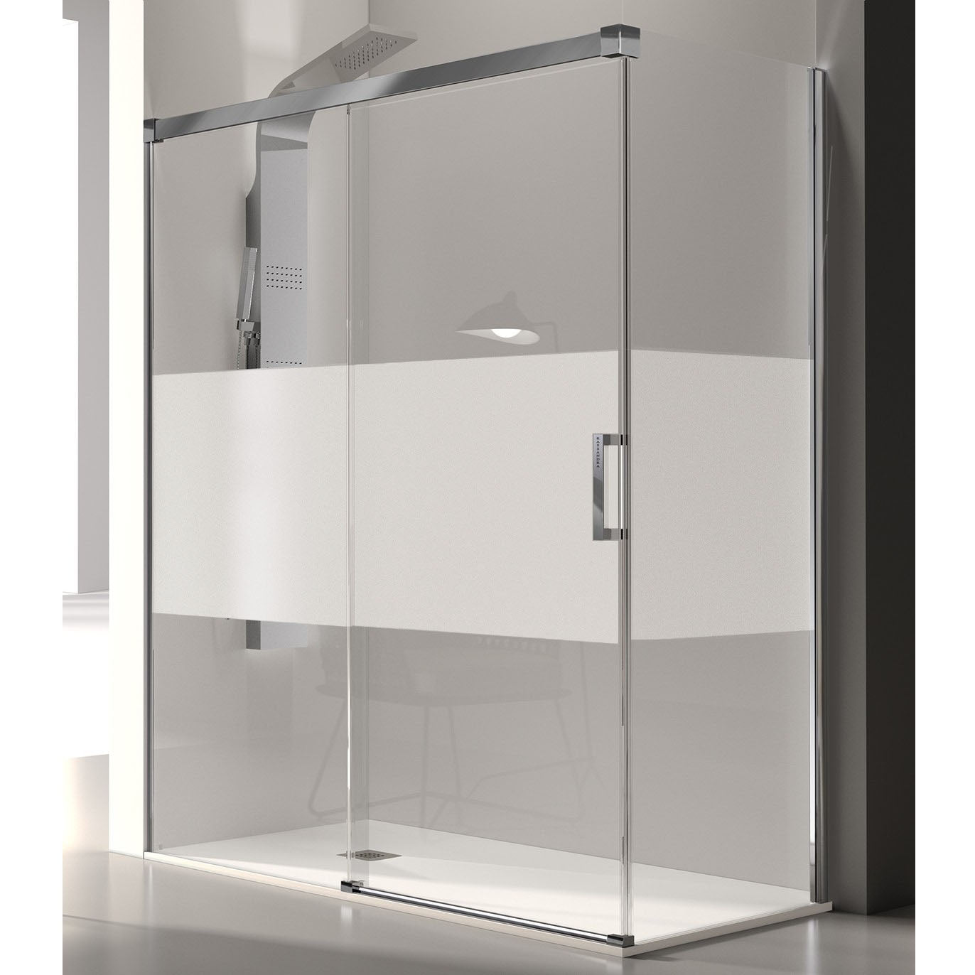 Panneau de douche fixe avec porte coulissante, modèle GLASÉ, de longueur 112 cm à 180 cm.