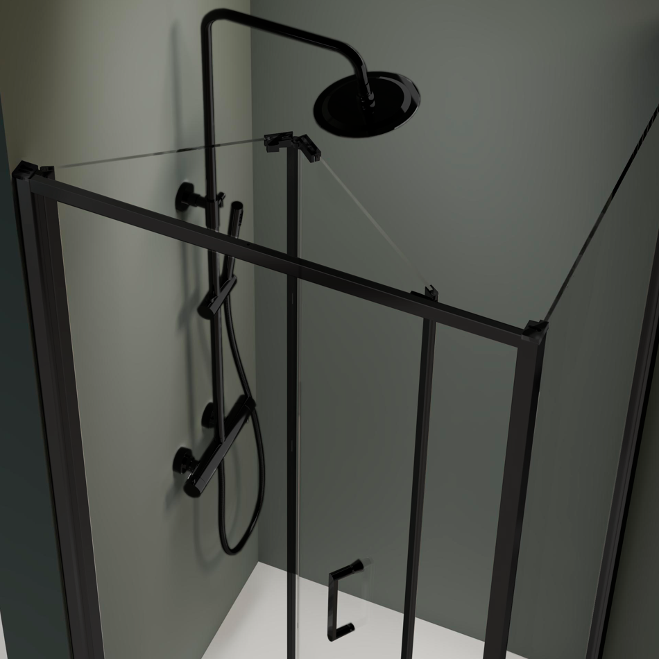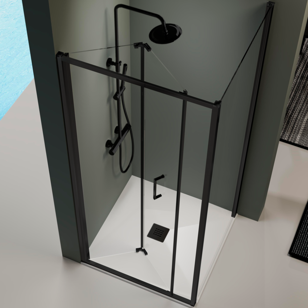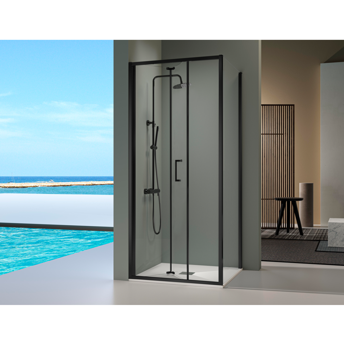 Paroi de douche de type porte pliante, modèle PRISMA, finition noir mat, de longueur 66 cm à 94 cm.