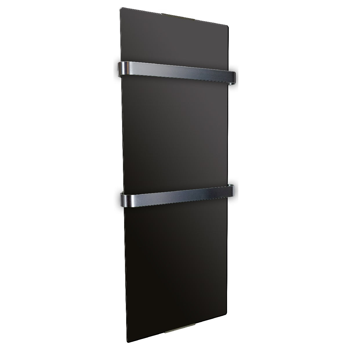 Radiateur de salle de bain électrique de type sèche-serviettes au design très moderne noir brillant.
