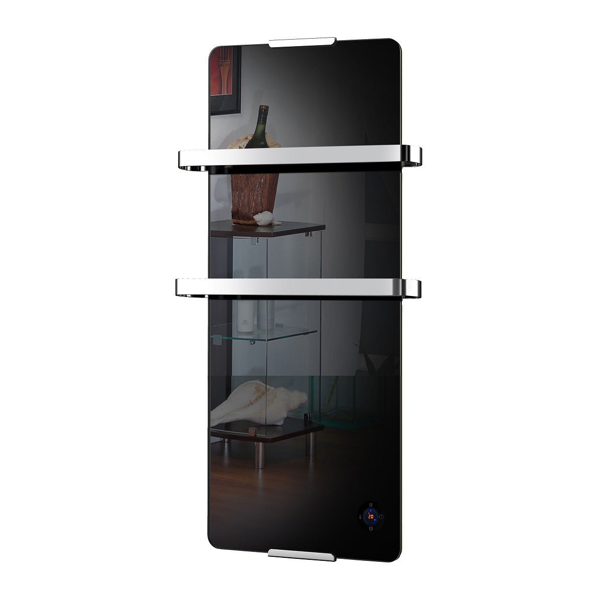 Radiateur de salle de bain électrique de type sèche-serviettes au design très moderne noir brillant.