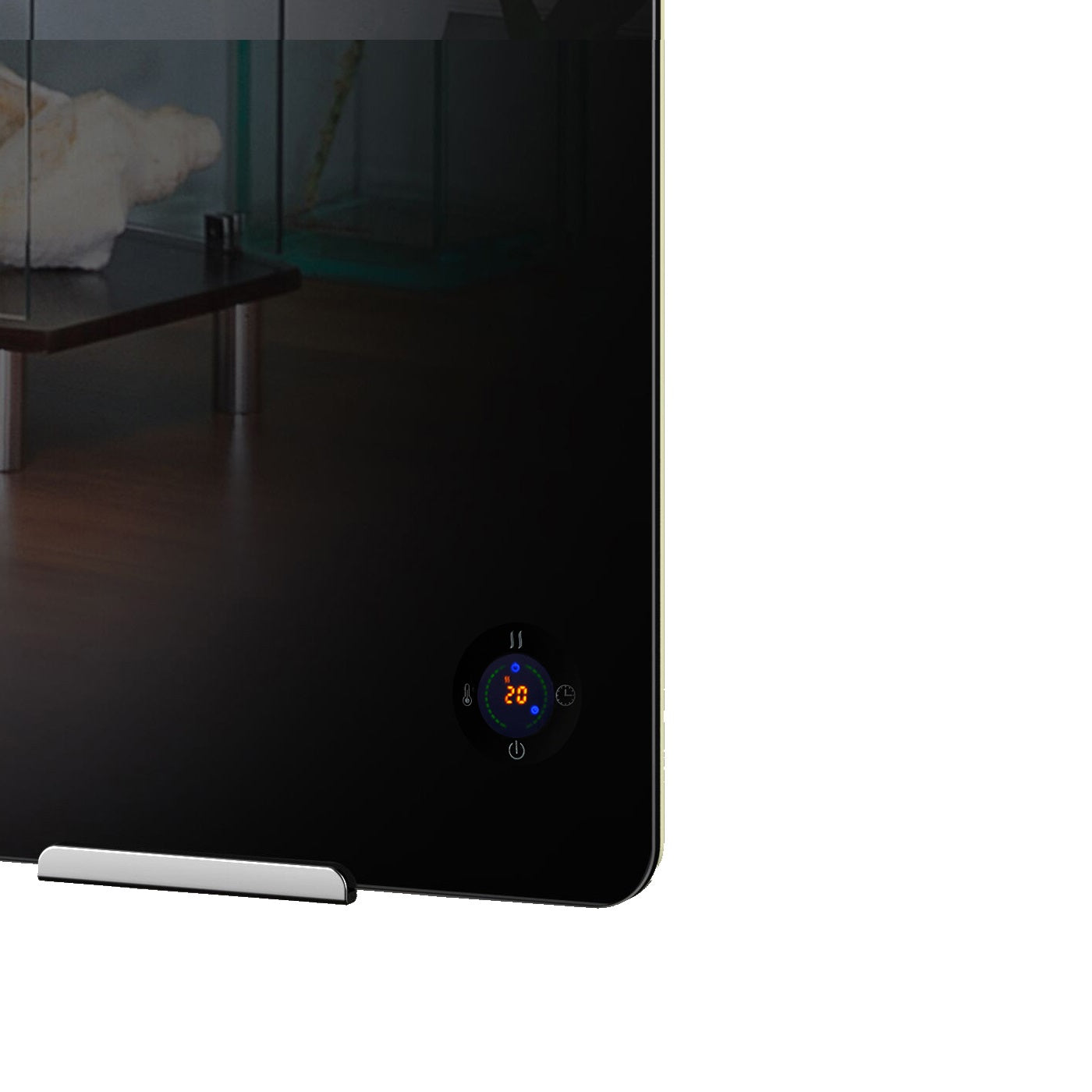 Technologie de chauffage en convection rayonnante : résistance aluminium en X associée au rayonnement d'un panneau en verre, ce qui permet une chauffe efficace et maîtrisée