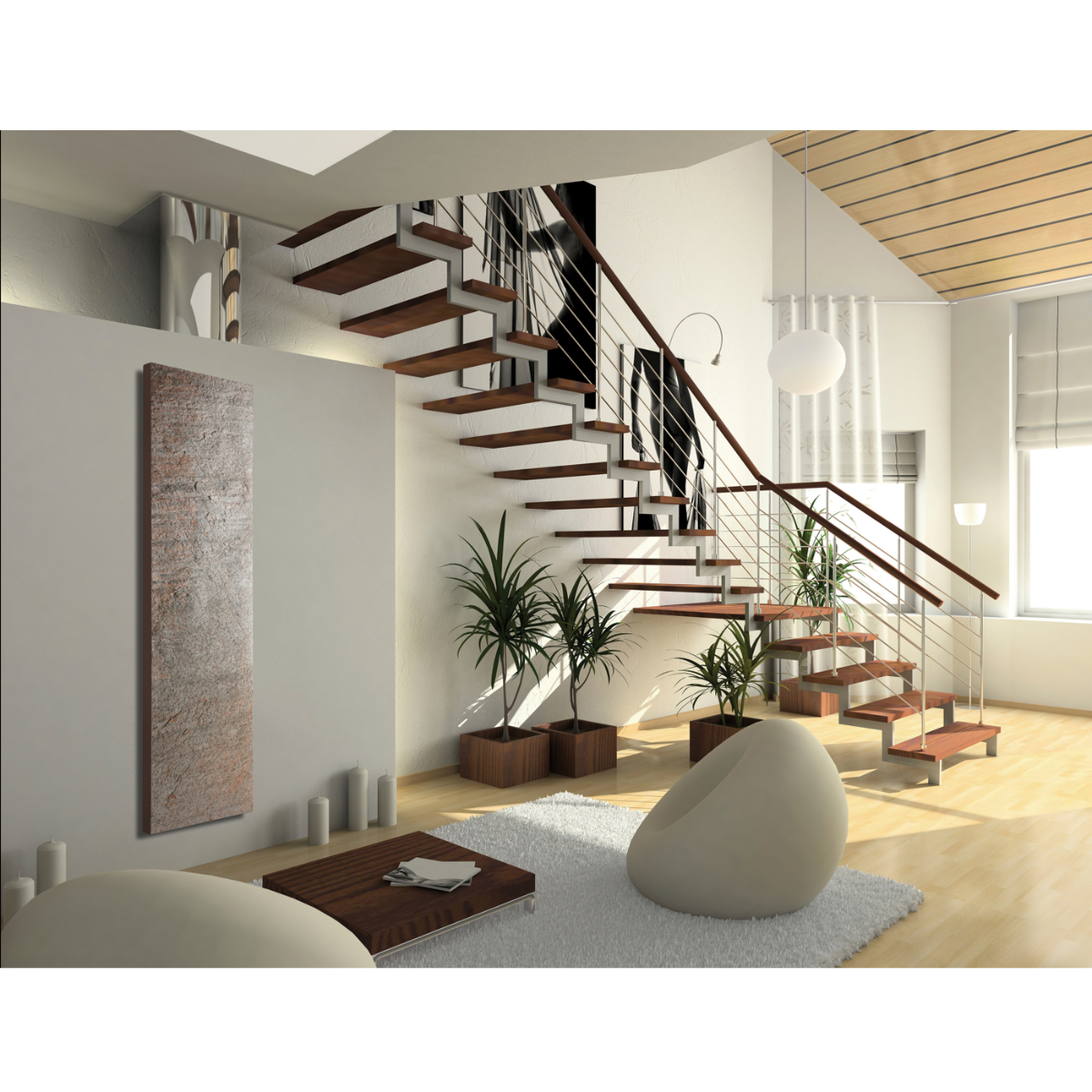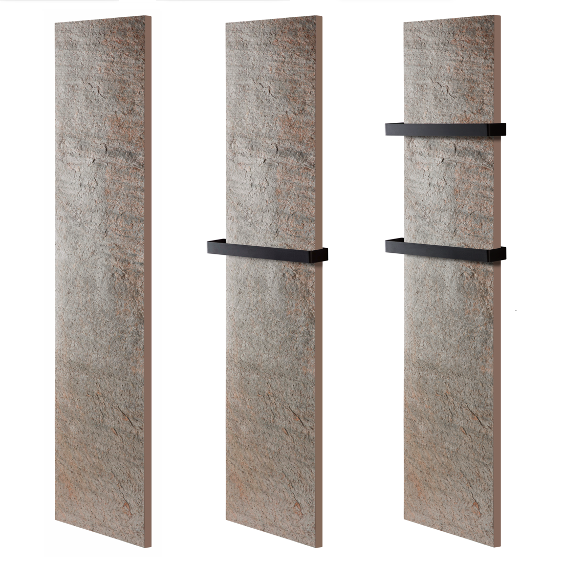 Radiateur sèche-serviettes électrique ultra-plat, au design très moderne, finition pierre naturelle cuprus.