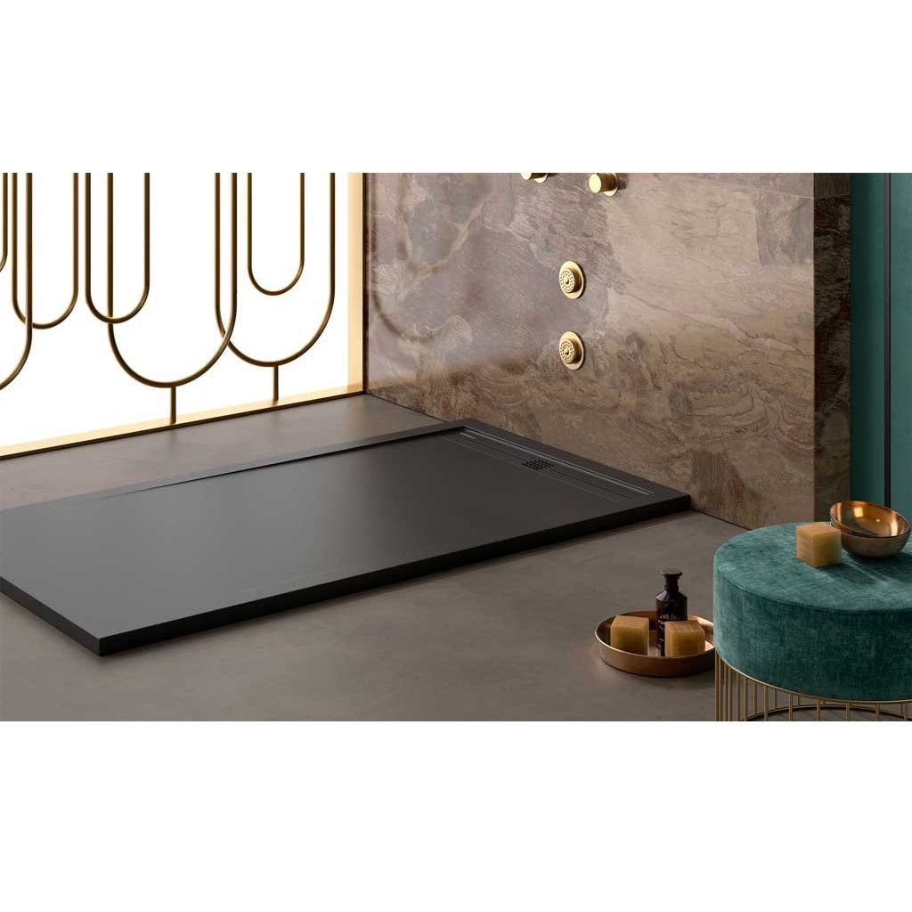 Receveur de douche extra plat ARCO en résine, ultra-résistant et ultra-durable, coloris noir RAL 9005.