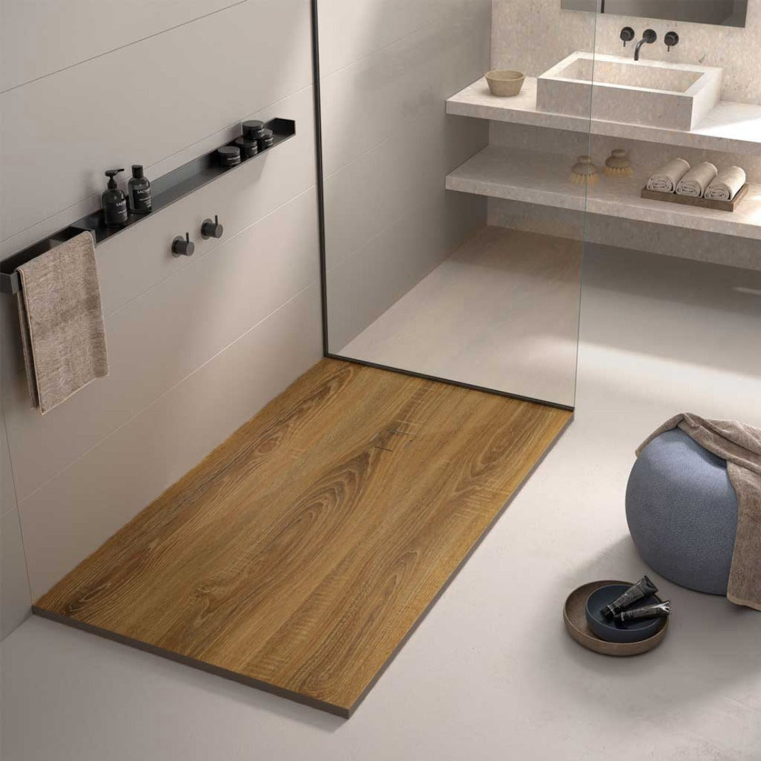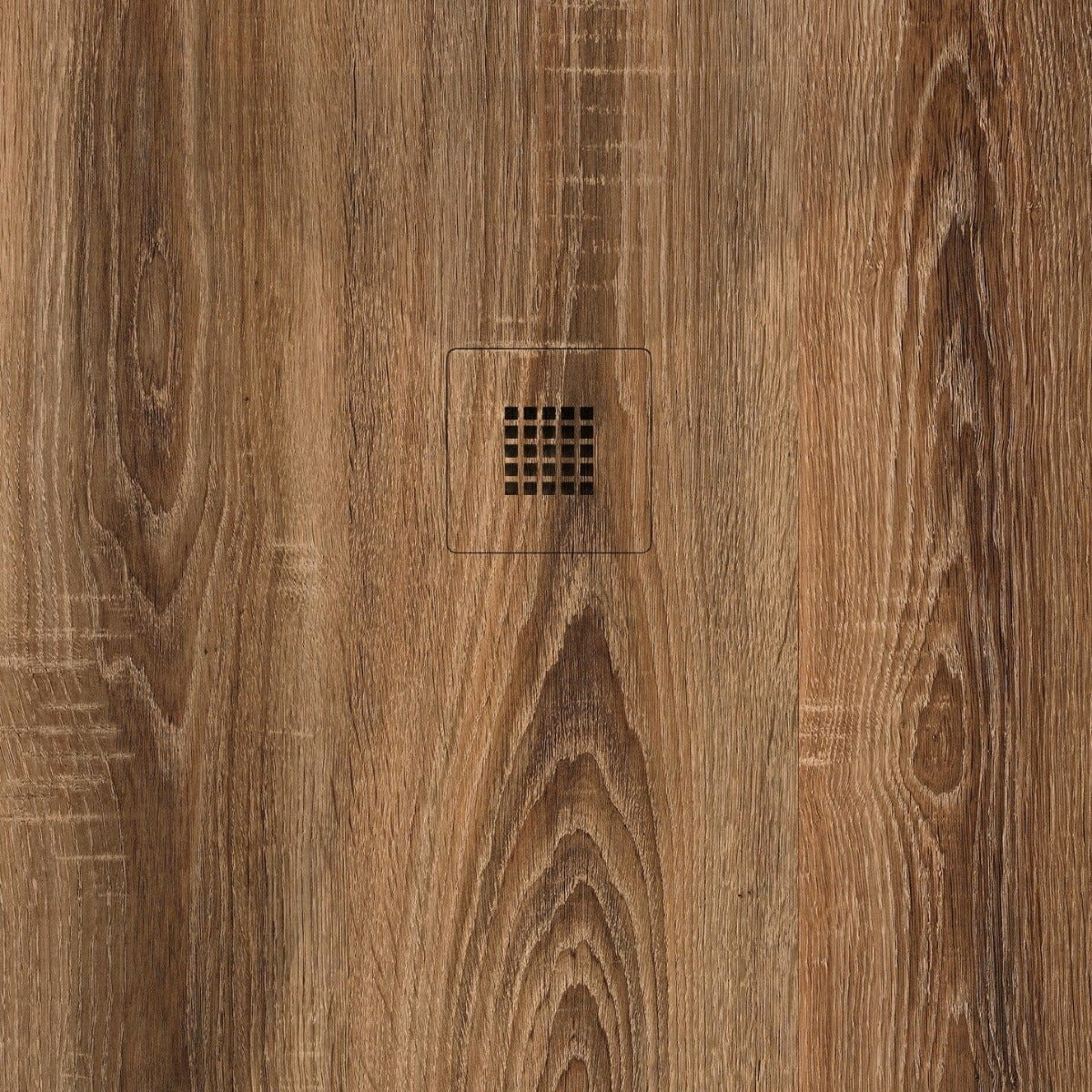 Receveur de douche extra plat DEKOR en résine, ultra-résistant et ultra-durable, finition bois brut.