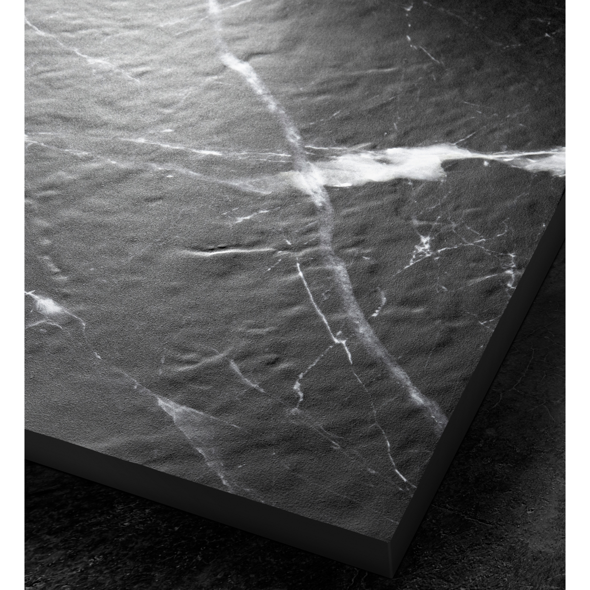 Finition : effet marbre noir. Chaque receveur est unique et singulier, avec un toucher minéral incomparable.