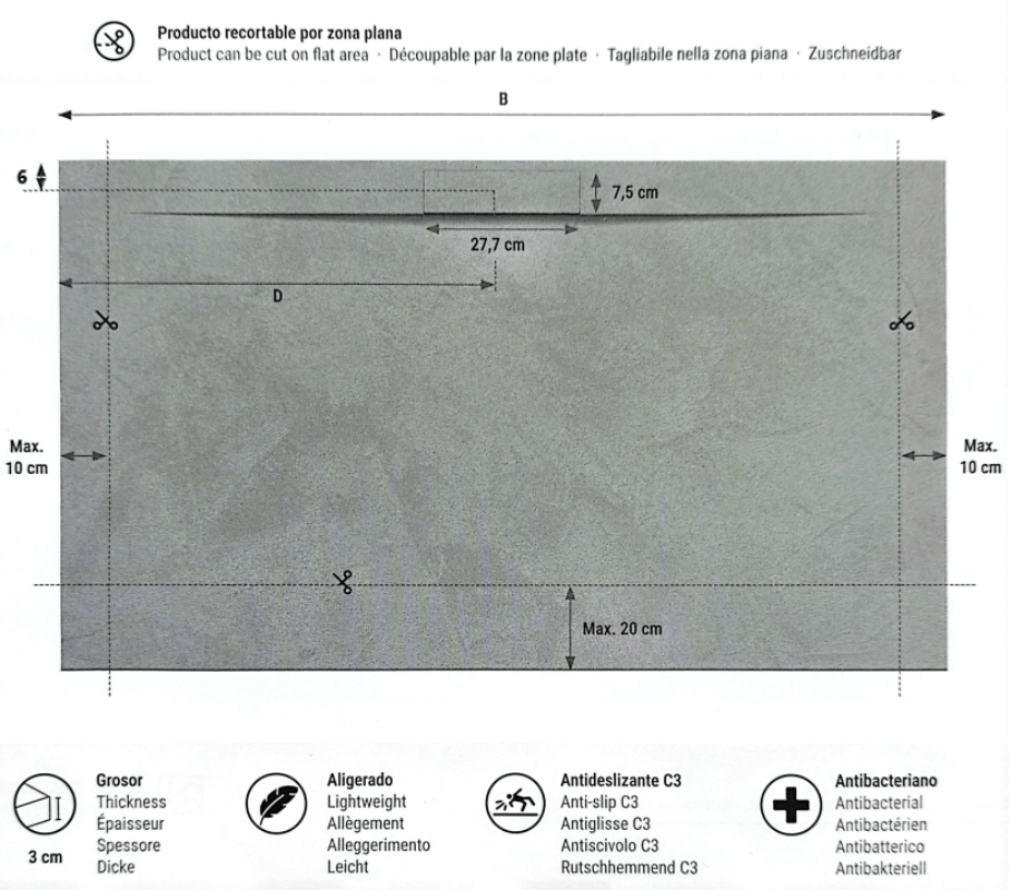 - Surface antidérapante classe 3 (R10), certifiée ENV12633