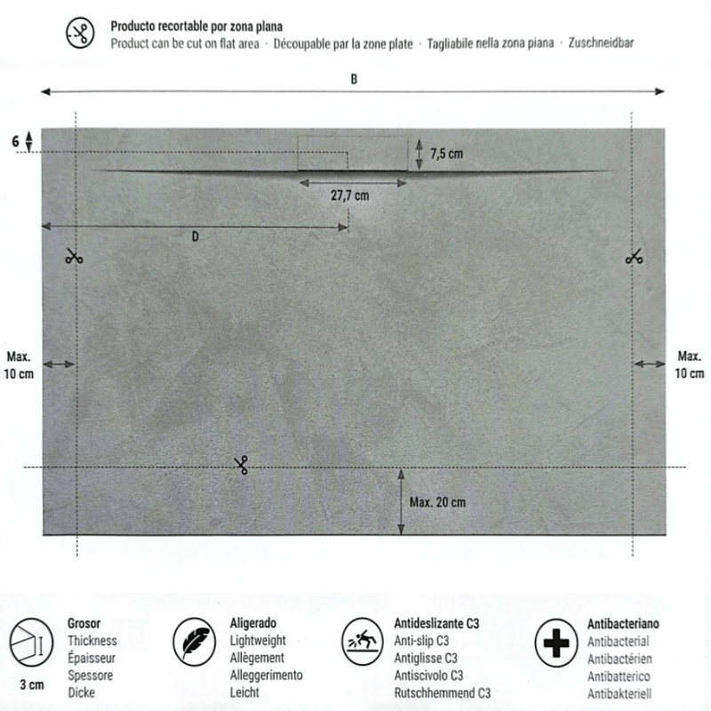 - Le receveur de douche peut être découpé aux dimensions souhaitées