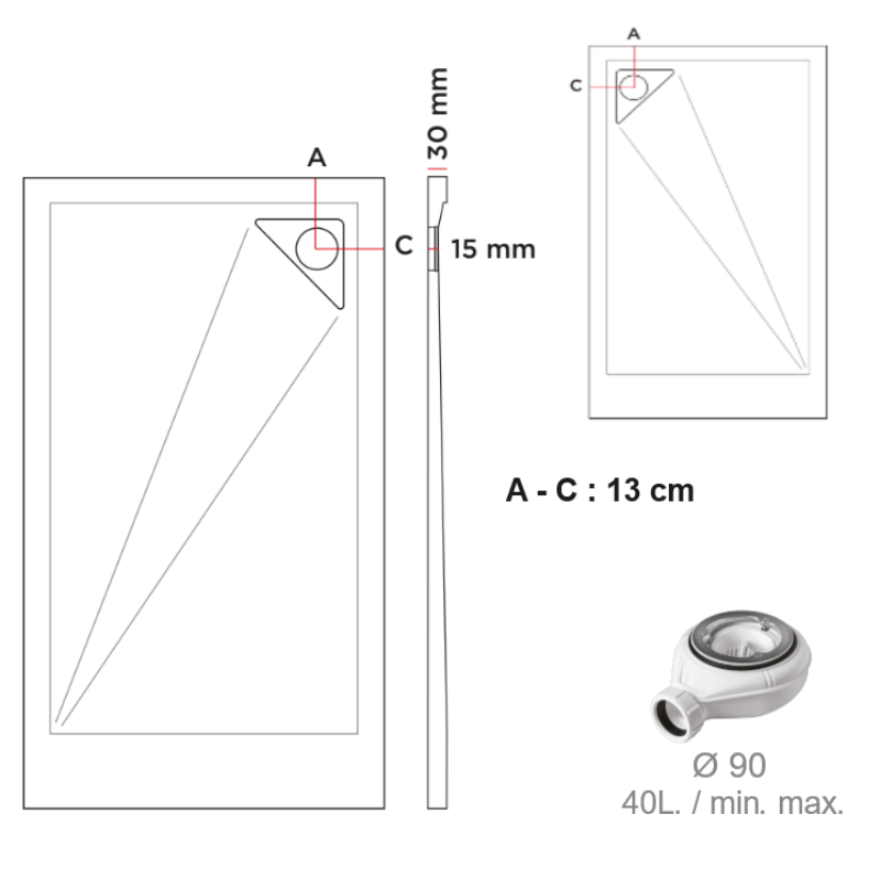 *Une bonde d'évacuation horizontale Ø90 mm est fournie par défaut.