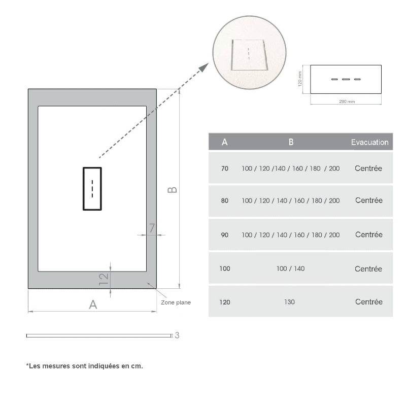 Il est recommandé de stocker le receveur de douche à l'horizontale et au niveau du sol.