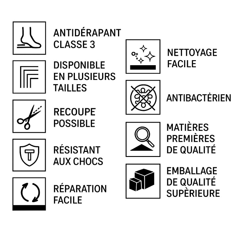 • Surface antidérapante classe 3 (R10), certifiée ENV12633