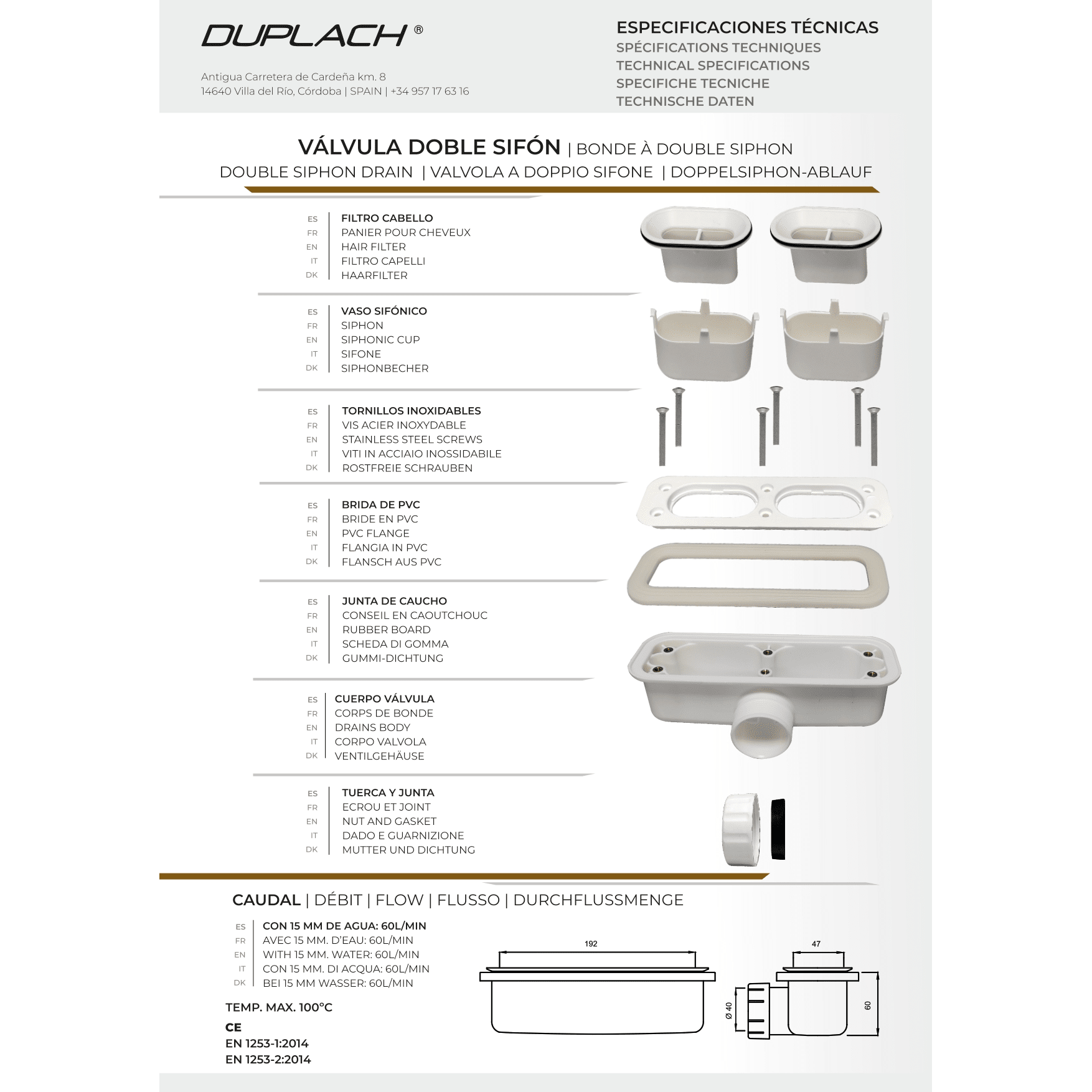 - Débit du siphon : 42 l/min