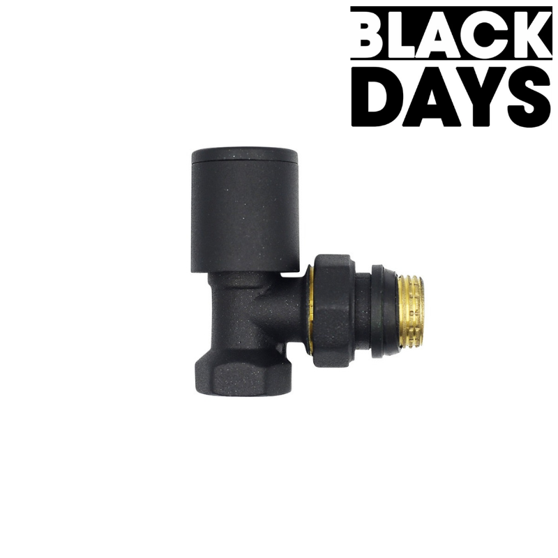 Robinet pour radiateur et sèche-serviette de coloris noir mat.