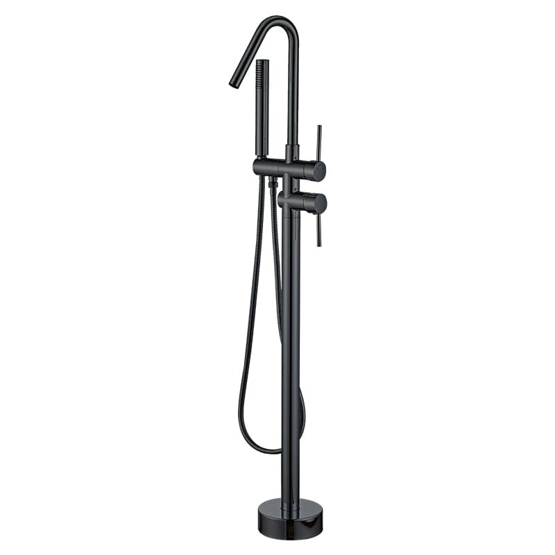Robinet de baignoire sur pied rond cascade en laiton noir mat
