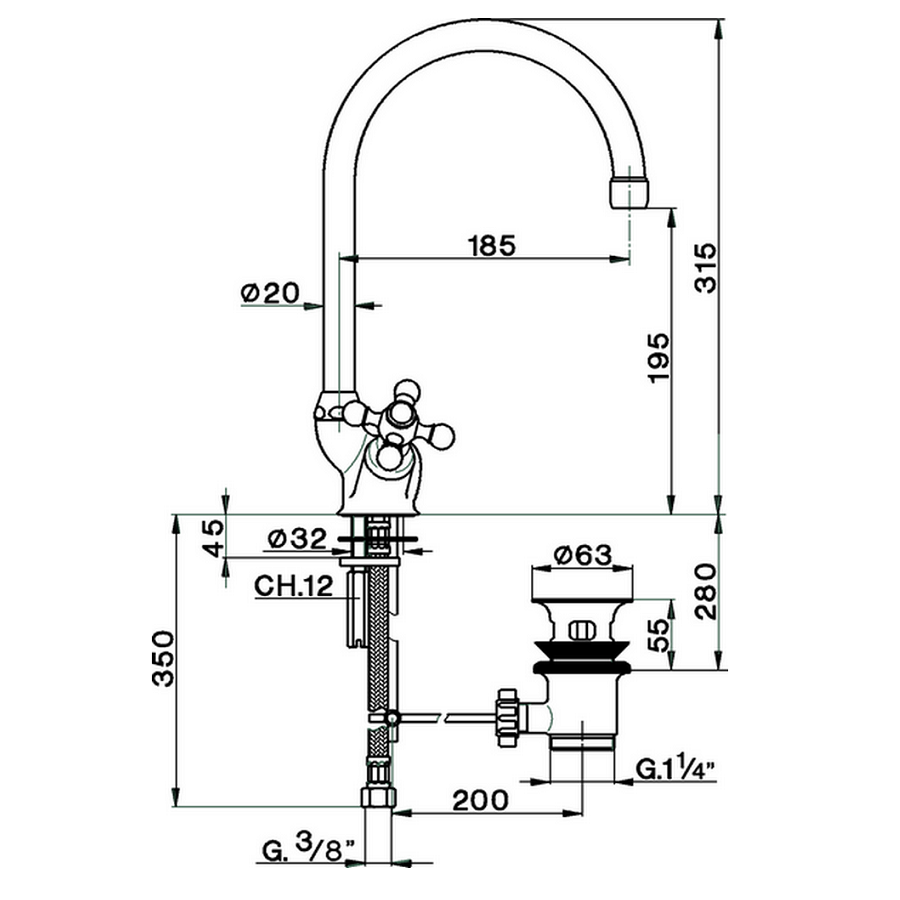 Ce robinet lavabo est livré avec une bonde à tirette en laiton massif.