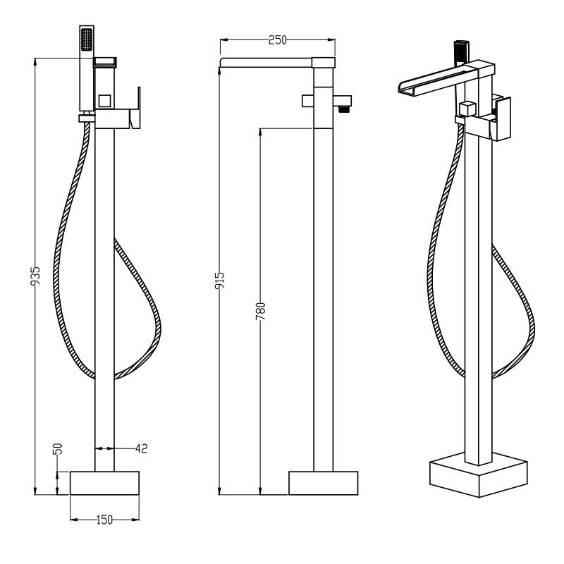 - Robinet baignoire livré avec une douchette à main design, un support de douchette et un flexible de douche premium.