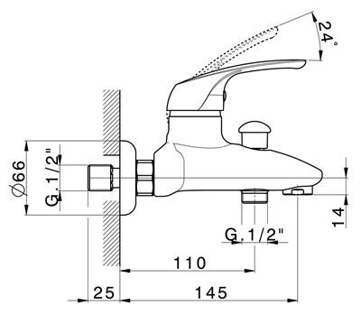 Robinet mitigeur bain/douche mural de style moderne, finition chromée.