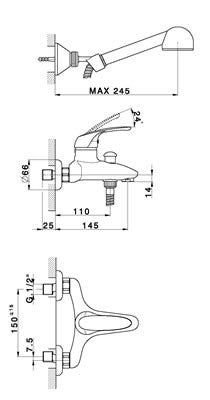 Robinet mitigeur bain/douche mural de style moderne, avec support mural pour la douche.
