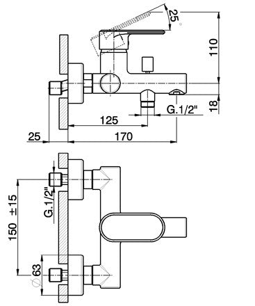 Robinet mitigeur bain/douche mural de style design.