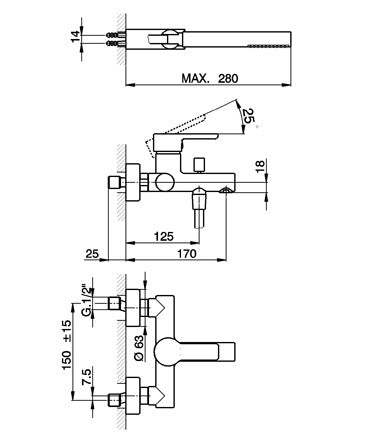 Robinet mitigeur bain/douche mural pour baignoire design ou classique.
