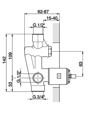 Robinet mitigeur bain/douche mural encastré de style design.
