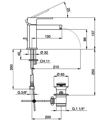 Robinet cascade mitigeur lavabo de style design, sobre, élégant et intemporel avec vidage.