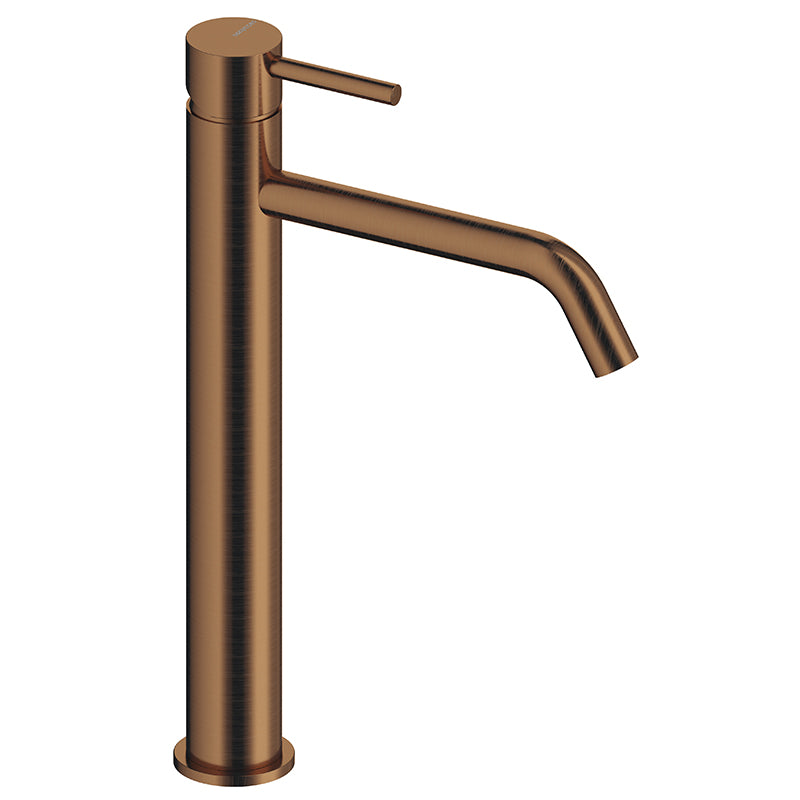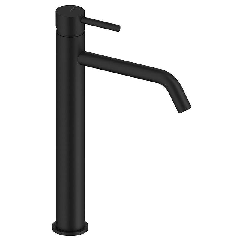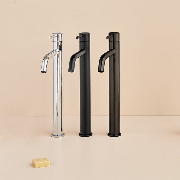 Robinet mitigeur lavabo rehaussé de style moderne, pour salle de bain design. Bien a dapté aux vasques à poser et disponible en six coloris.