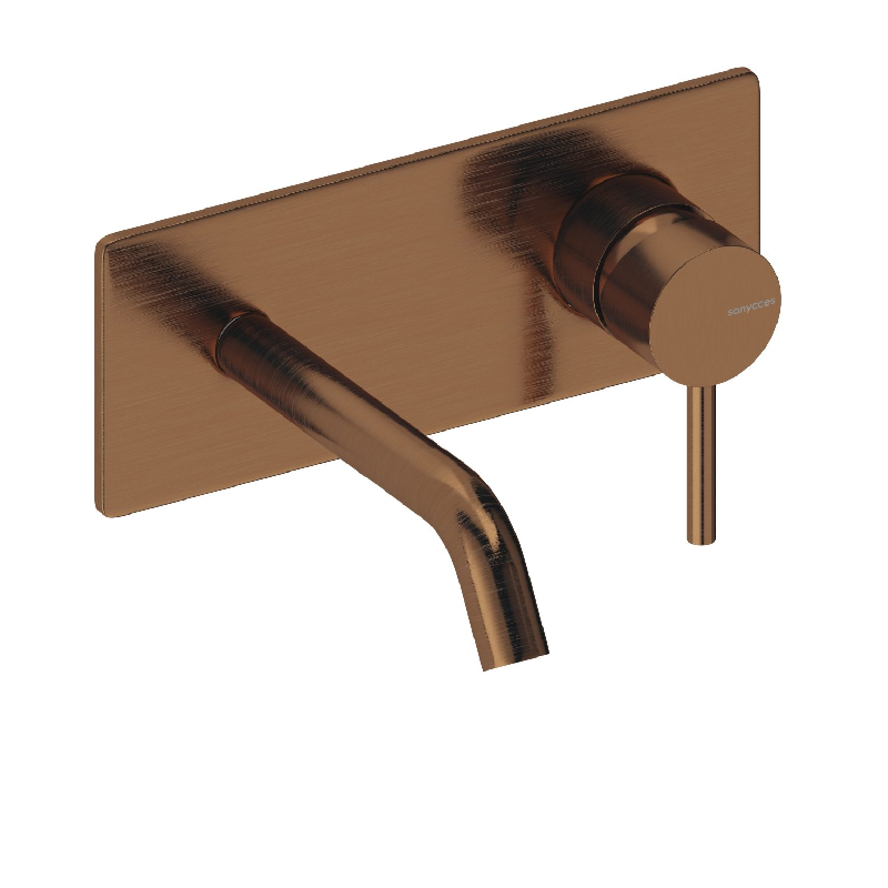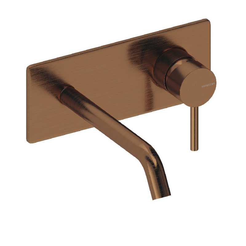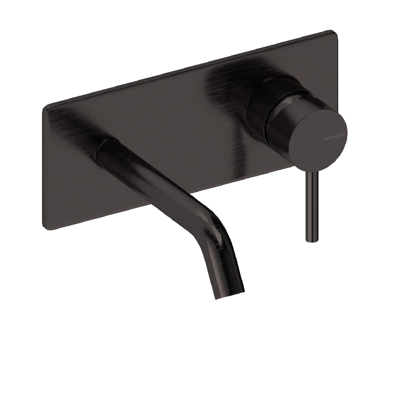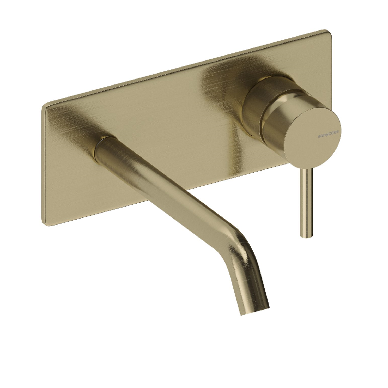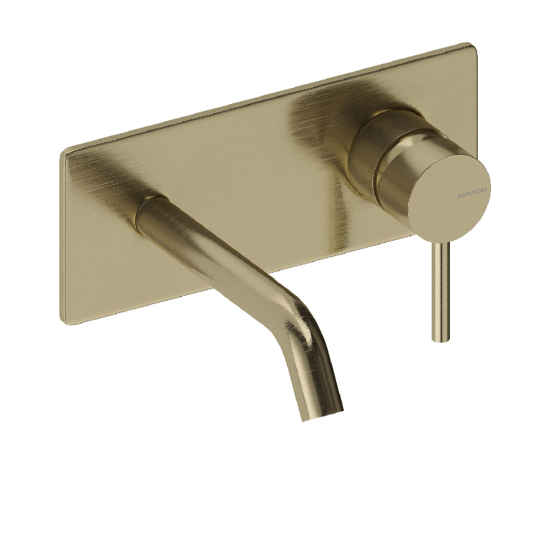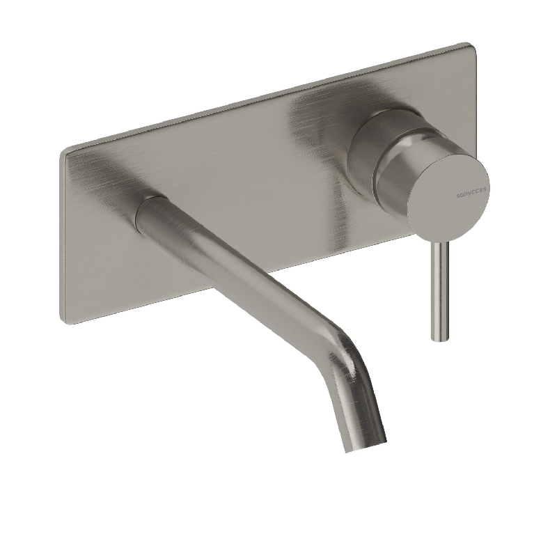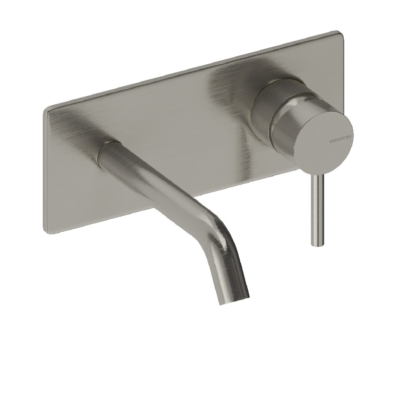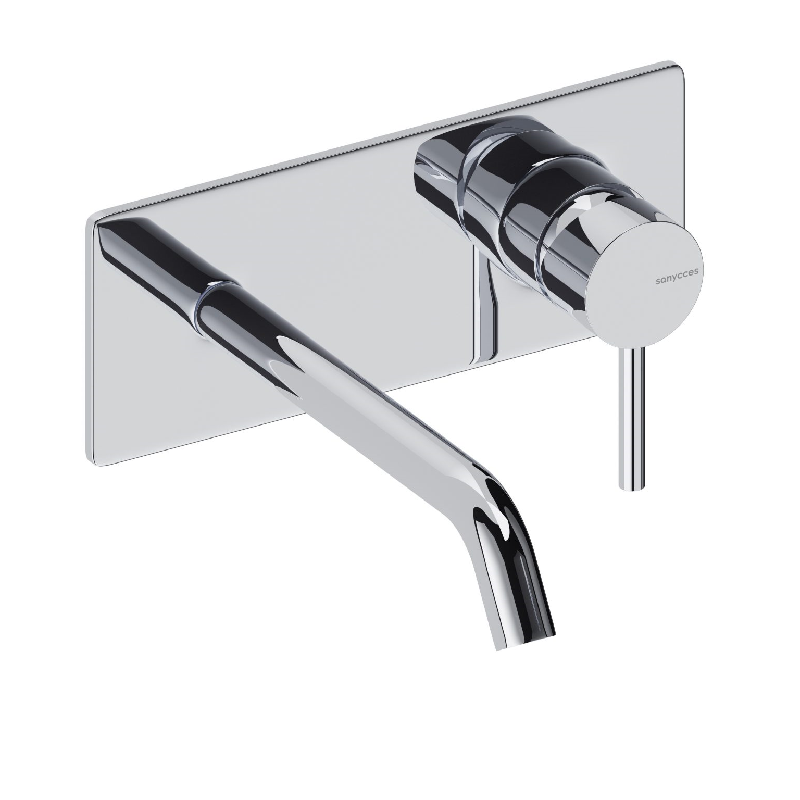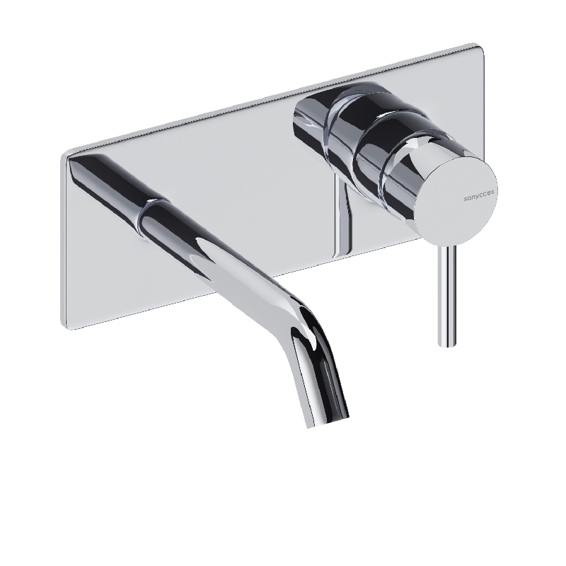 Robinet mitigeur mural avec plaque de style moderne, pour salle de bain design, avec boîte d'encastrement incluse.