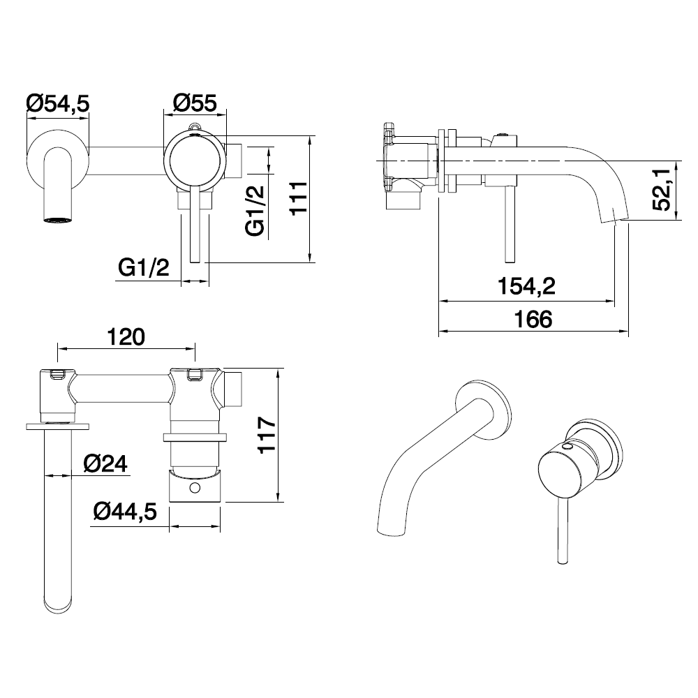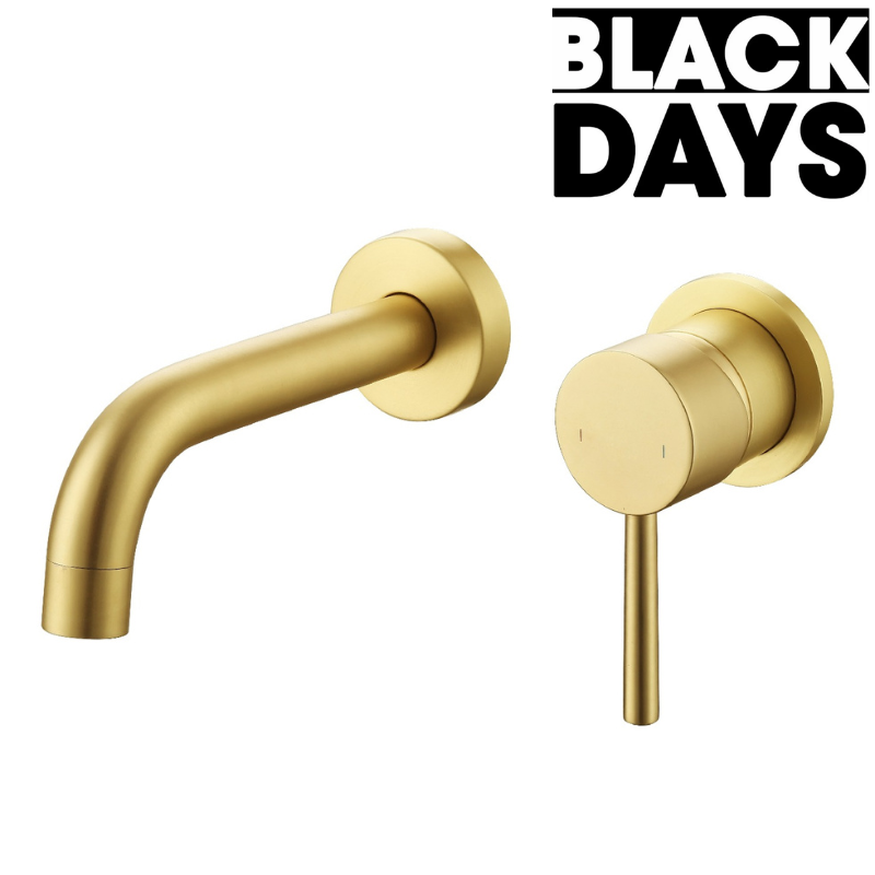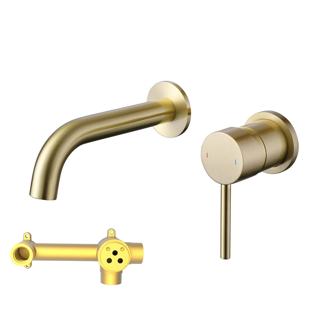 Robinet mitigeur mural encastré 2 trous, pour salle de bain design, finition doré or.