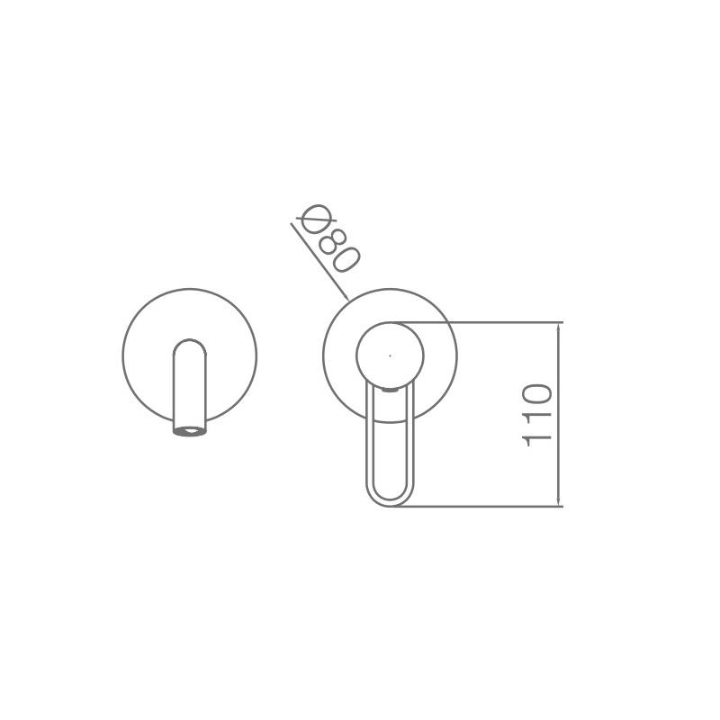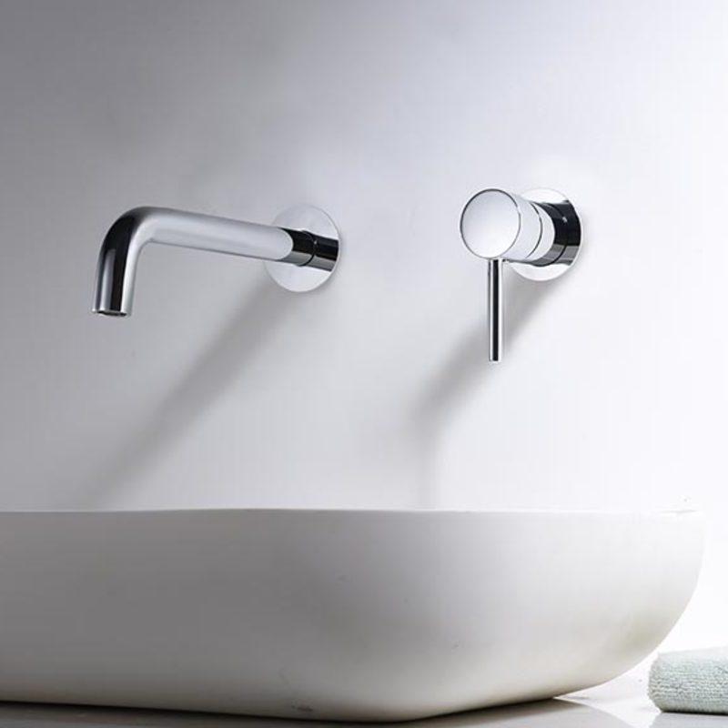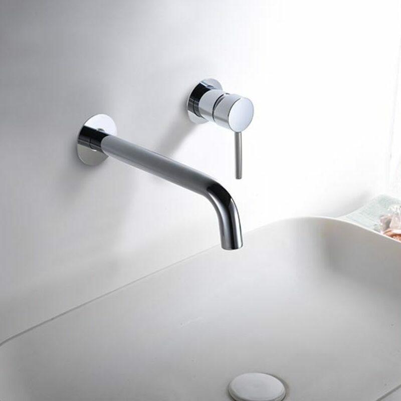 Mitigeur deux pièces : une sortie d'eau et un régulateur sous forme de poignée. Deux trous dans le mur sont nécessaires.