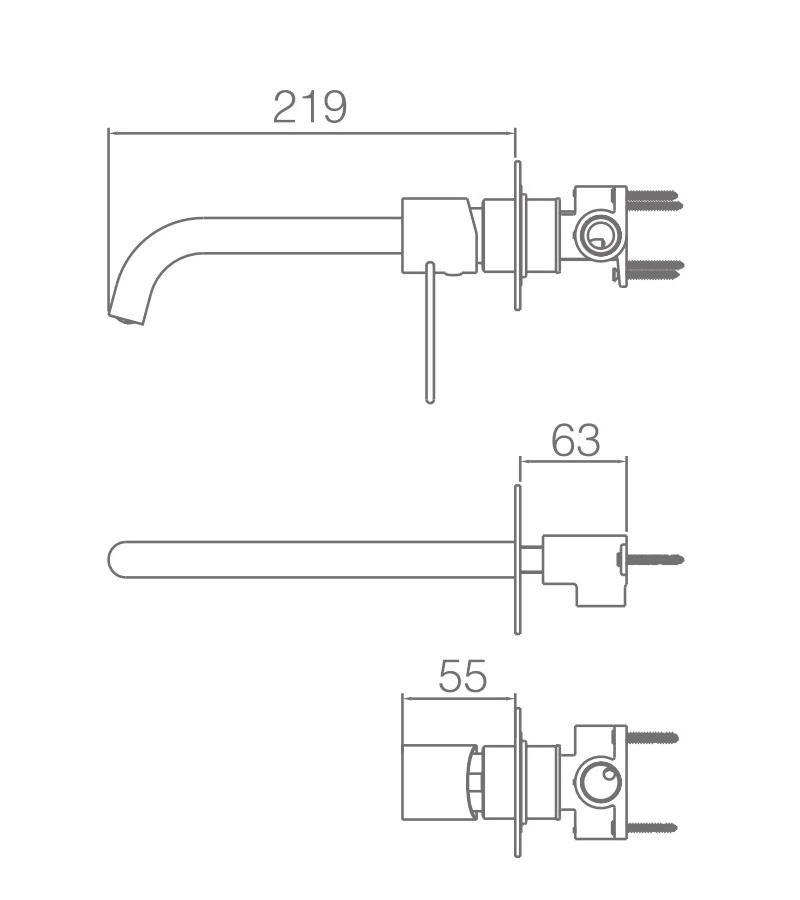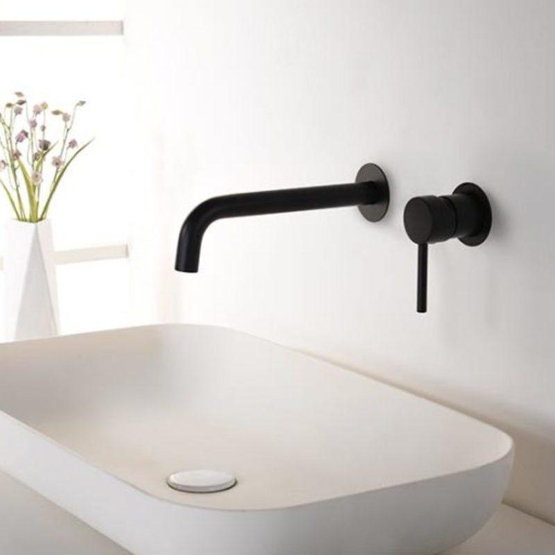 Mitigeur deux pièces : une sortie d'eau et un régulateur sous forme de poignée. Deux trous dans le mur sont nécessaires.