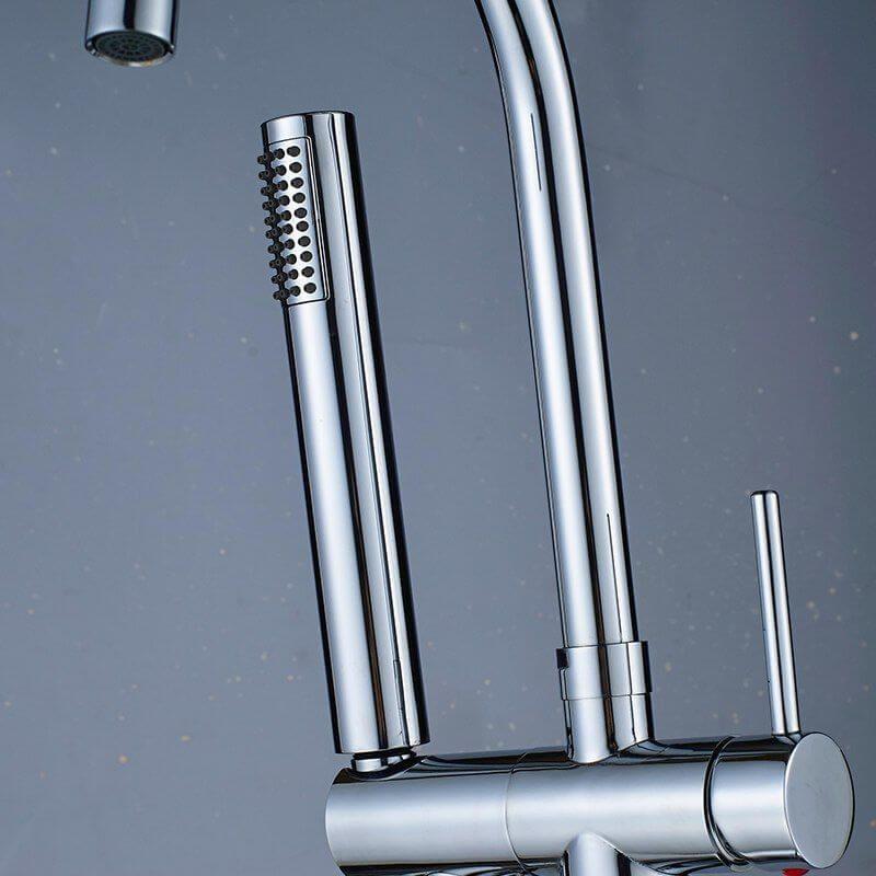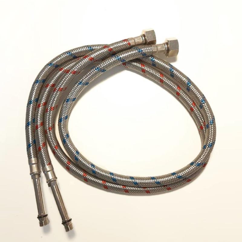 - Deux flexibles d’alimentation en PVC, sortant de la base du robinet