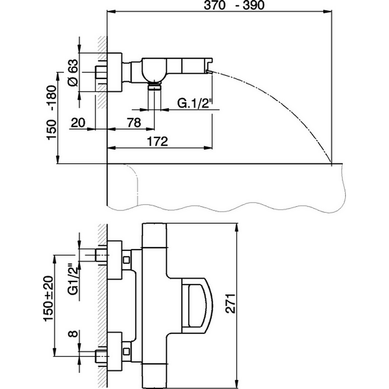 Robinet type cascade, thermostatique bain/douche mural de style design.
