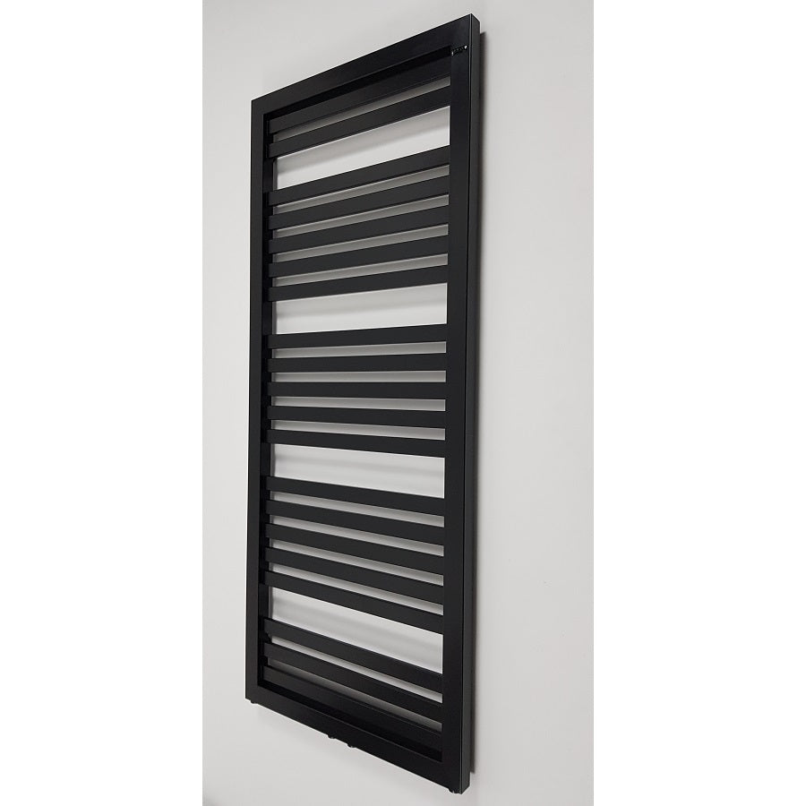 - Cache tuyau mural sèche-serviette noir, pouvant être commandé séparément
