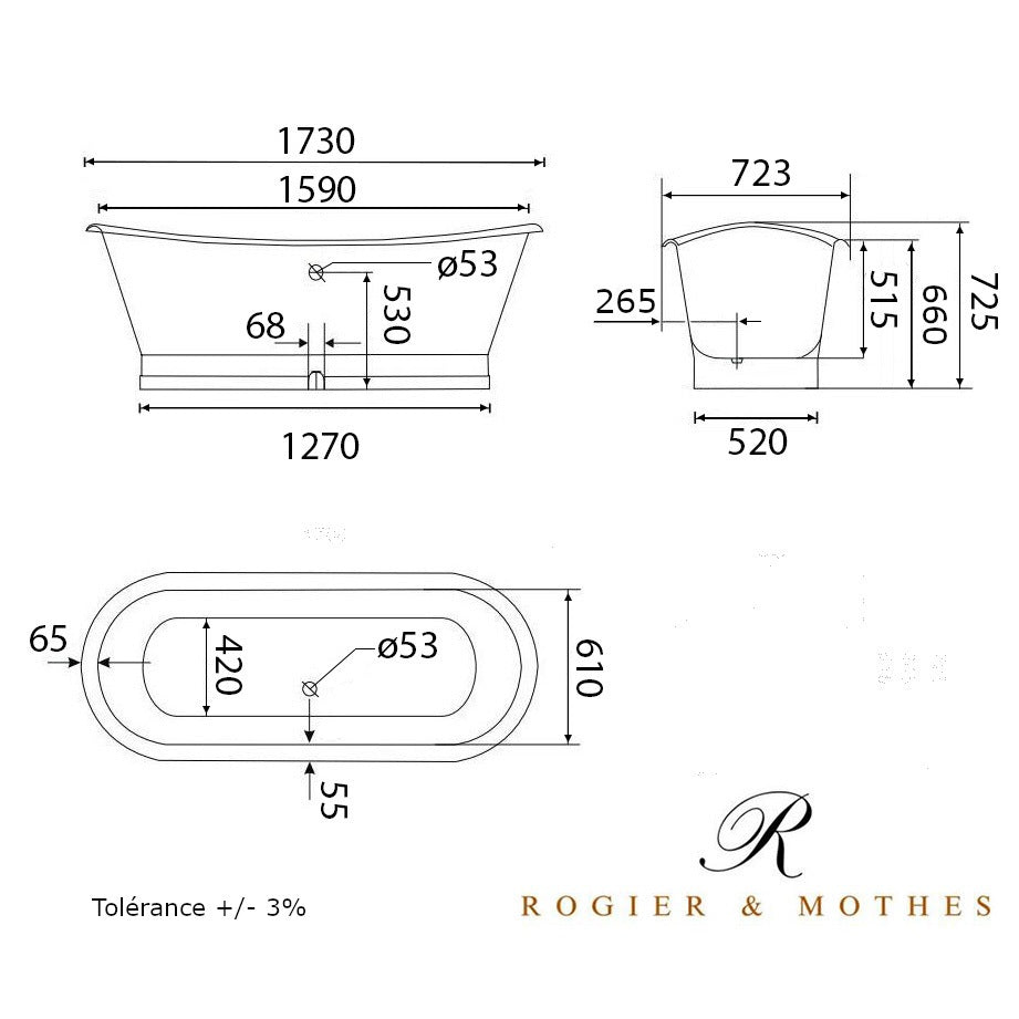Attention : les baignoires en fonte sont livrées dans une caisse en bois dont le poids total est compris entre 150 et 250 kg. Consulter la rubrique livraison pour plus d'informations.