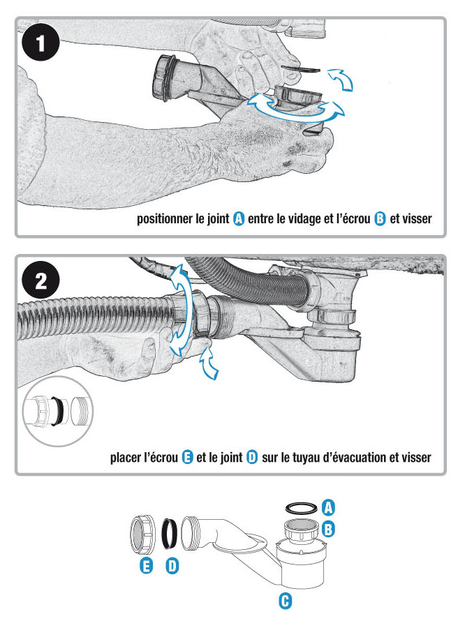 Siphon pour baignoire extra-plat de faible encombrement, de marque française VALENTIN, idéal pour baignoire îlot