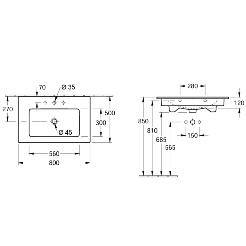 - Avec trop-plein et trou de robinetterie