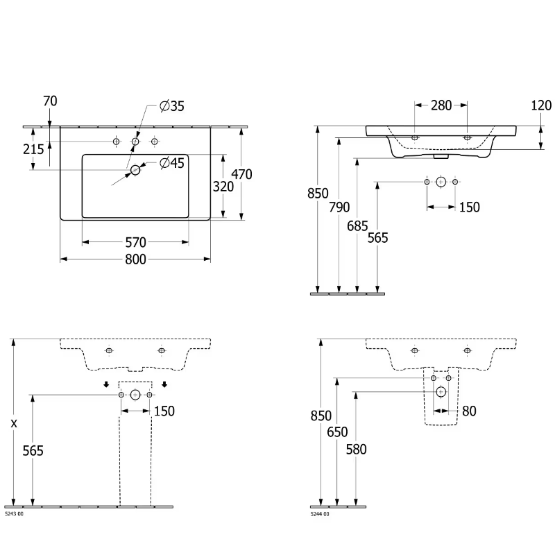 - Vasque non incluse; Convient pour vasque Subway 3.0 80 cm Art. 4A7080, 4A7081, 4A7083