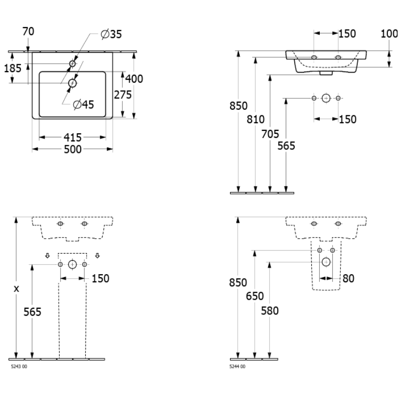 - Vasque non incluse; Convient pour vasque Subway 3.0 50 cm Art. 437050, 437051