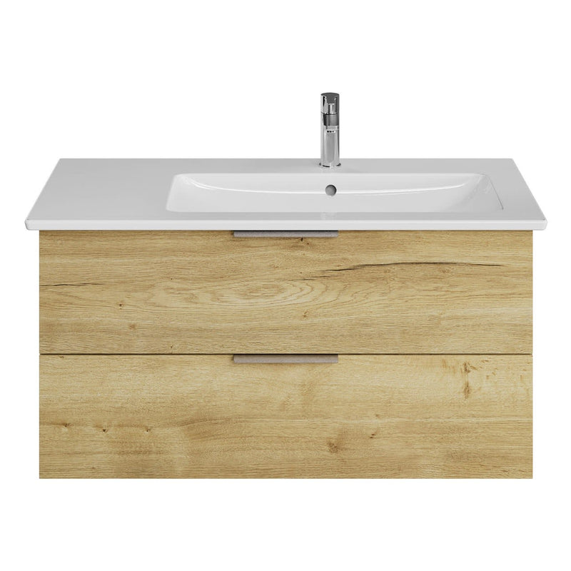 Ensemble meuble Living 2.0 avec vasque Venticello 100 cm avec trop-plein et trou de robinetterie , chêne d'Halifax, vasque à droite