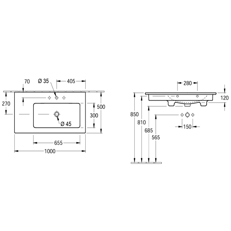 - Vasque à droite