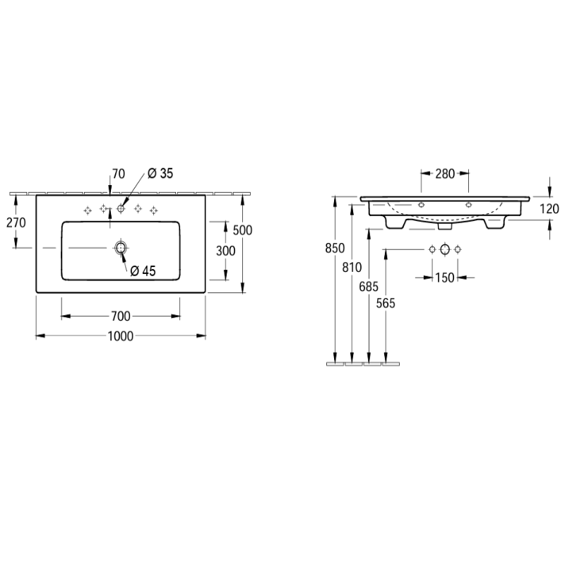 - Hauteur visible : 1,3 cmMeuble sous-vasque :