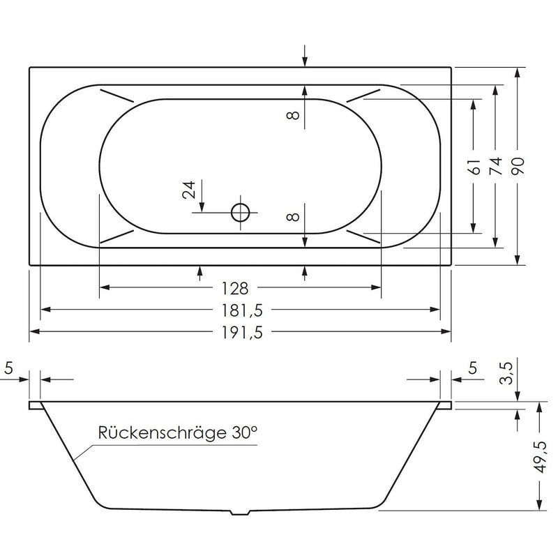 Baignoire Steinkamp Life 190 x 90 cm : Cette baignoire spacieuse offre suffisamment d'espace pour une expérience de bain relaxante.