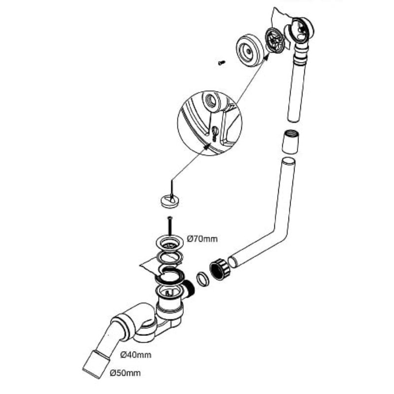 Le kit de vidage et de trop-plein Sturotec pour baignoires de longueur standard avec bouchon offre une solution fiable pour votre salle de bain.