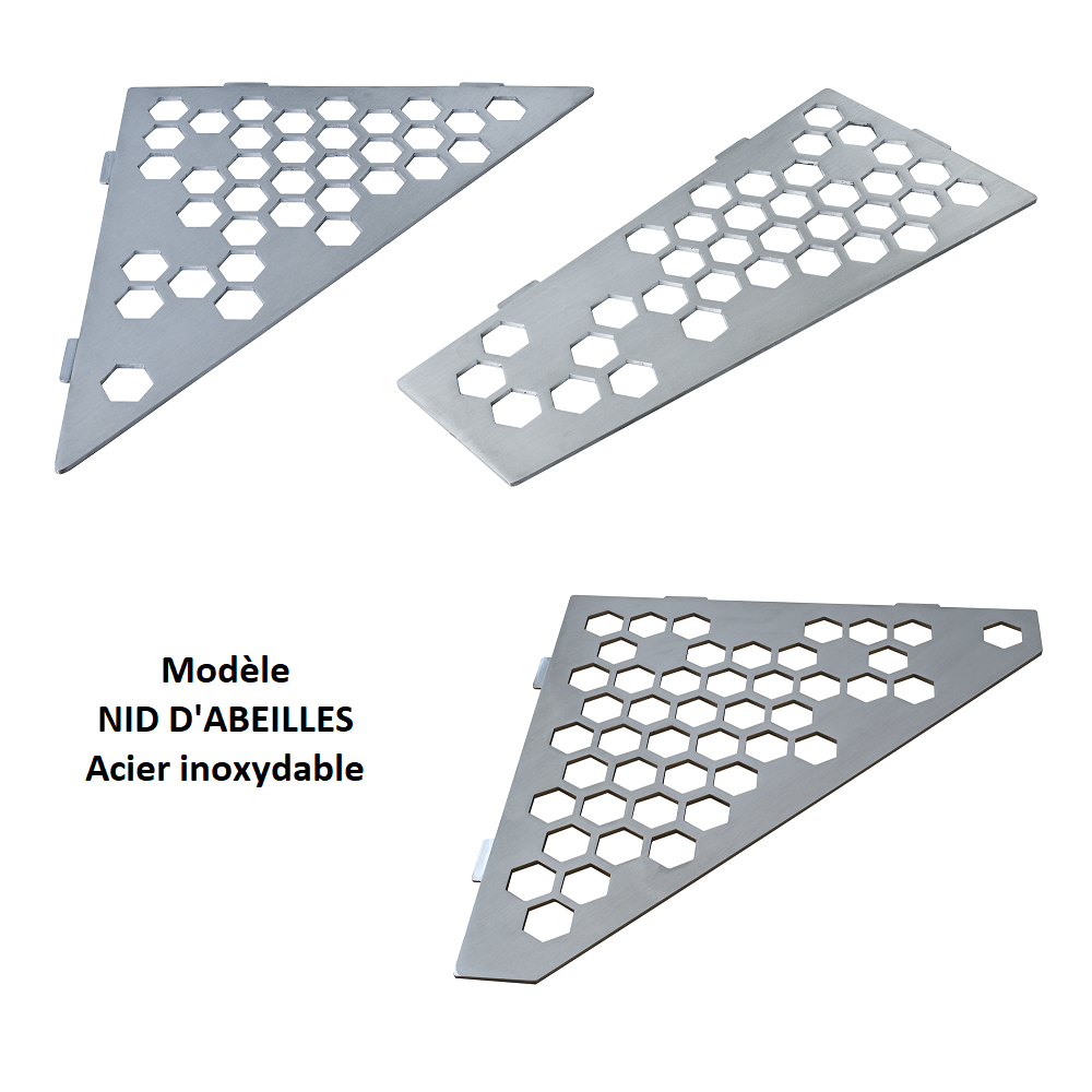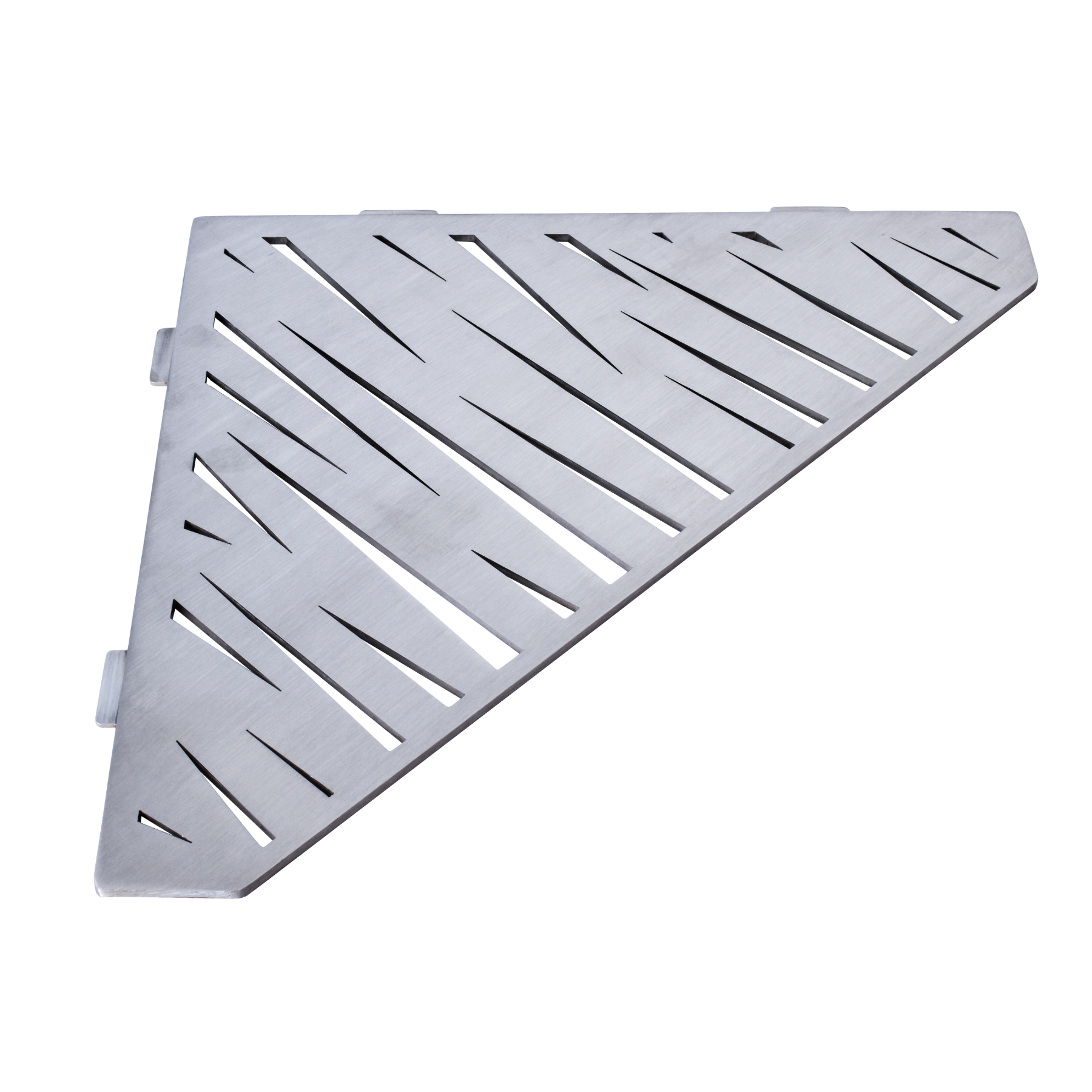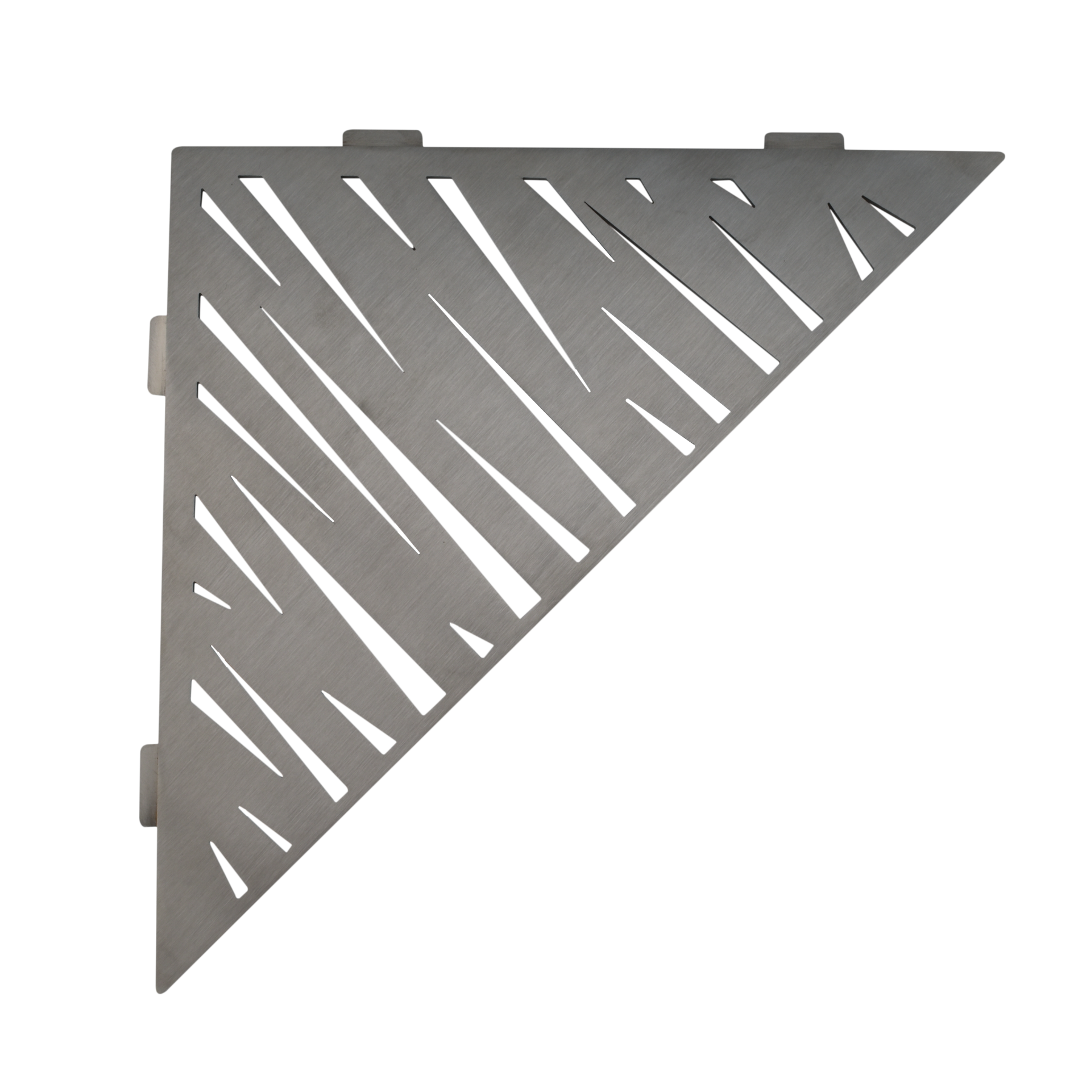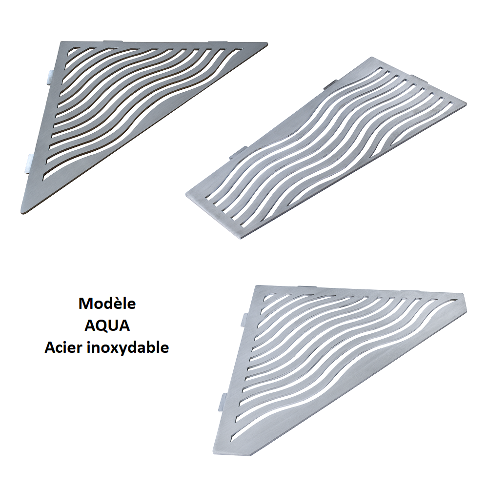 Tablettes d'angle, à fixer aux joints de carrelage, 12 modèles, acier inoxydable brossé, pour tout type de salle de bain.