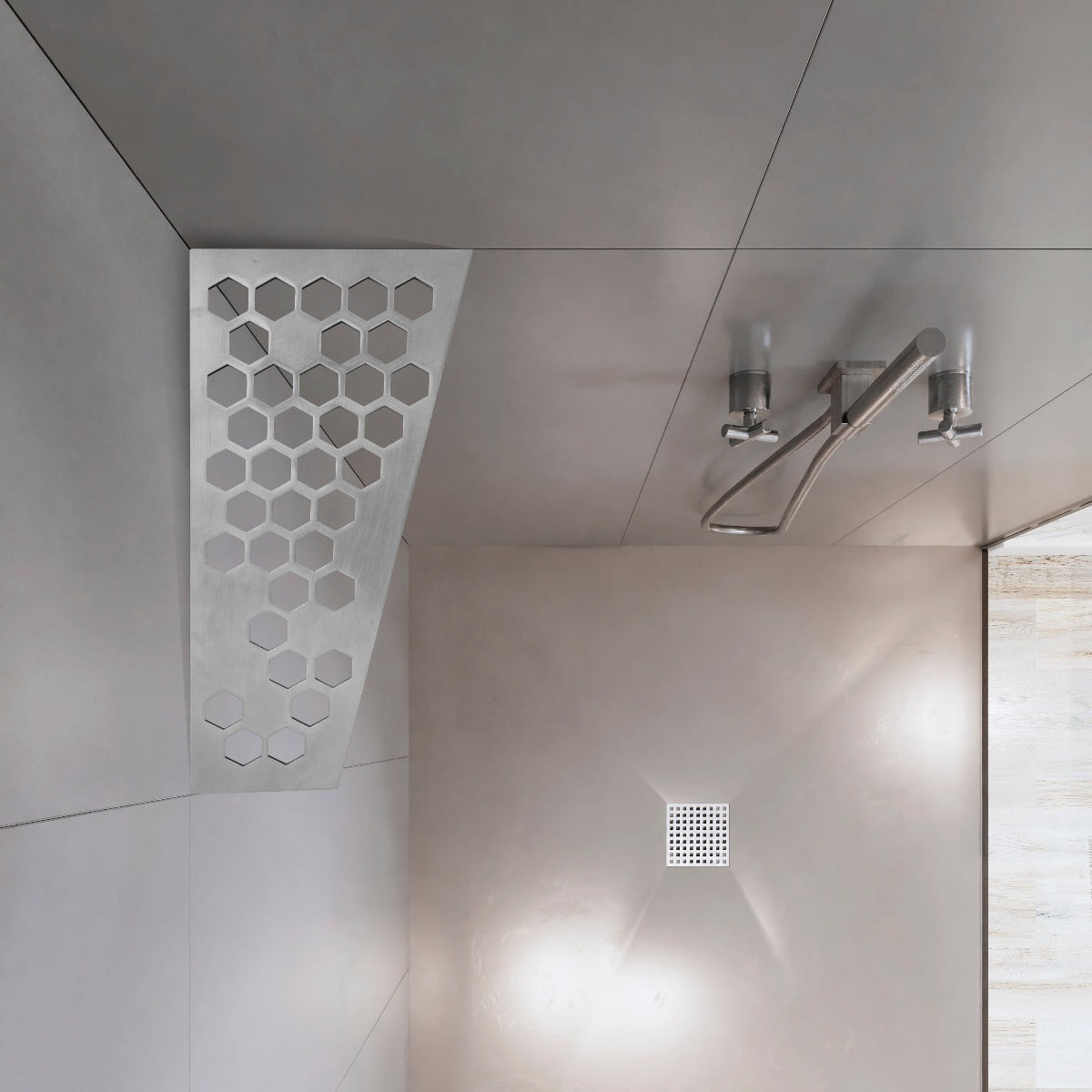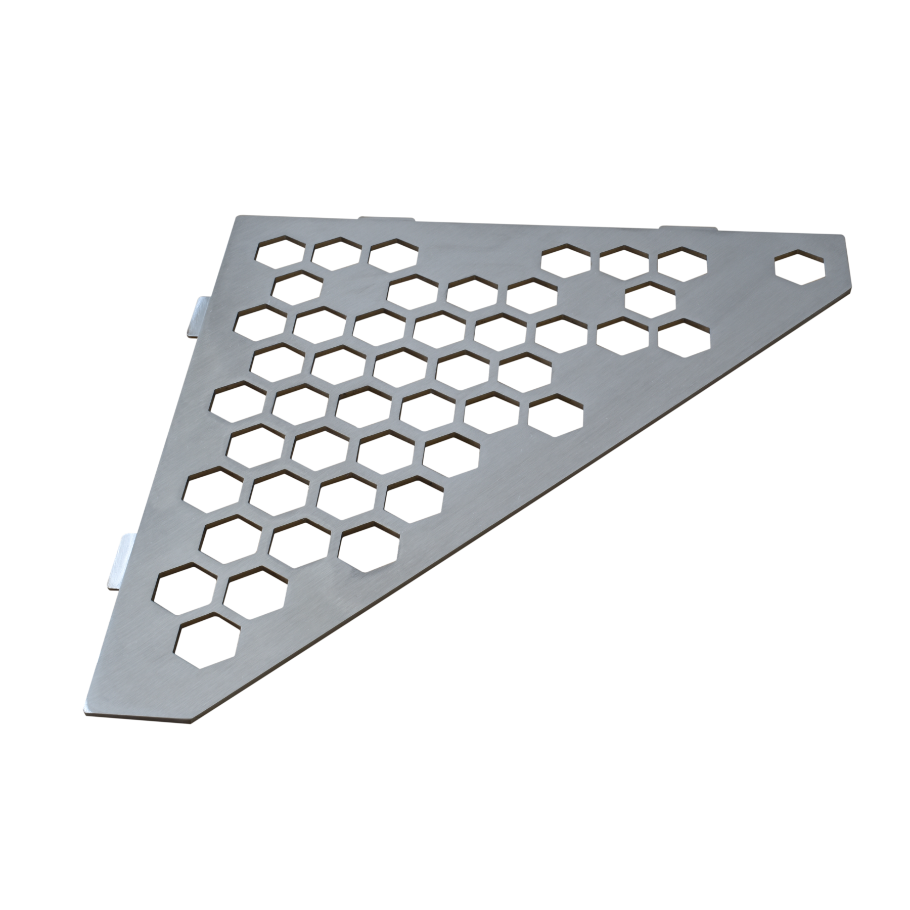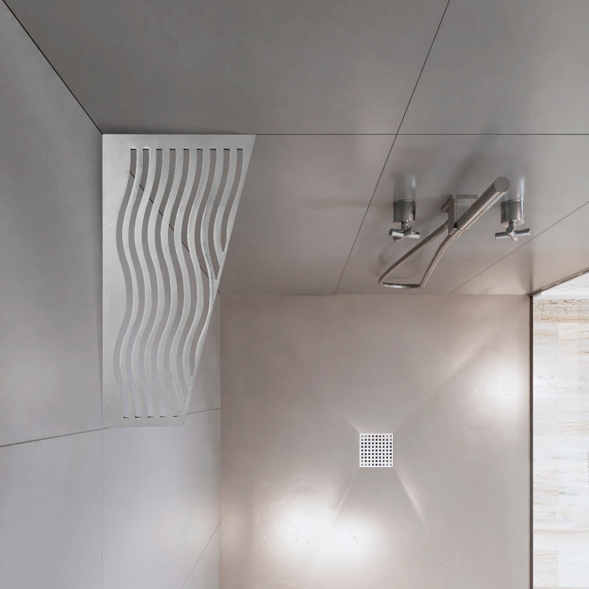 Tablettes d'angle, à fixer aux joints de carrelage, 12 modèles, acier inoxydable brossé, pour tout type de salle de bain.